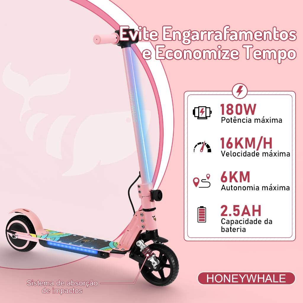 HONEYWHALE E10S Patinete Elétrico Infantil 180W 16KM/H 6KM, Dobrável, O Pedal Pode Mudar para 3 Cores