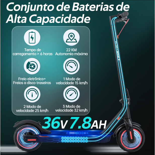 HONEYWHALE M2 Pro 500W Patinete Elétrico Scooter, 32 KM/H Velocidade, 22 KM Autonomia