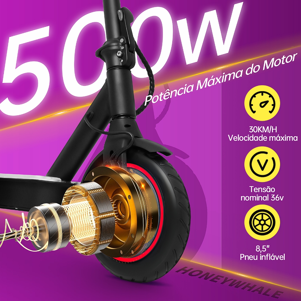 Honeywhale S2 Patinete Elétrico Adulto, 500w-30km/h-20km-6,6ah-7cores-scooter-eletrica