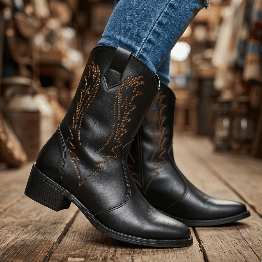 Bota Country Feminina Texana Cano Médio Bico Quadrado - Estilo e Conforto
