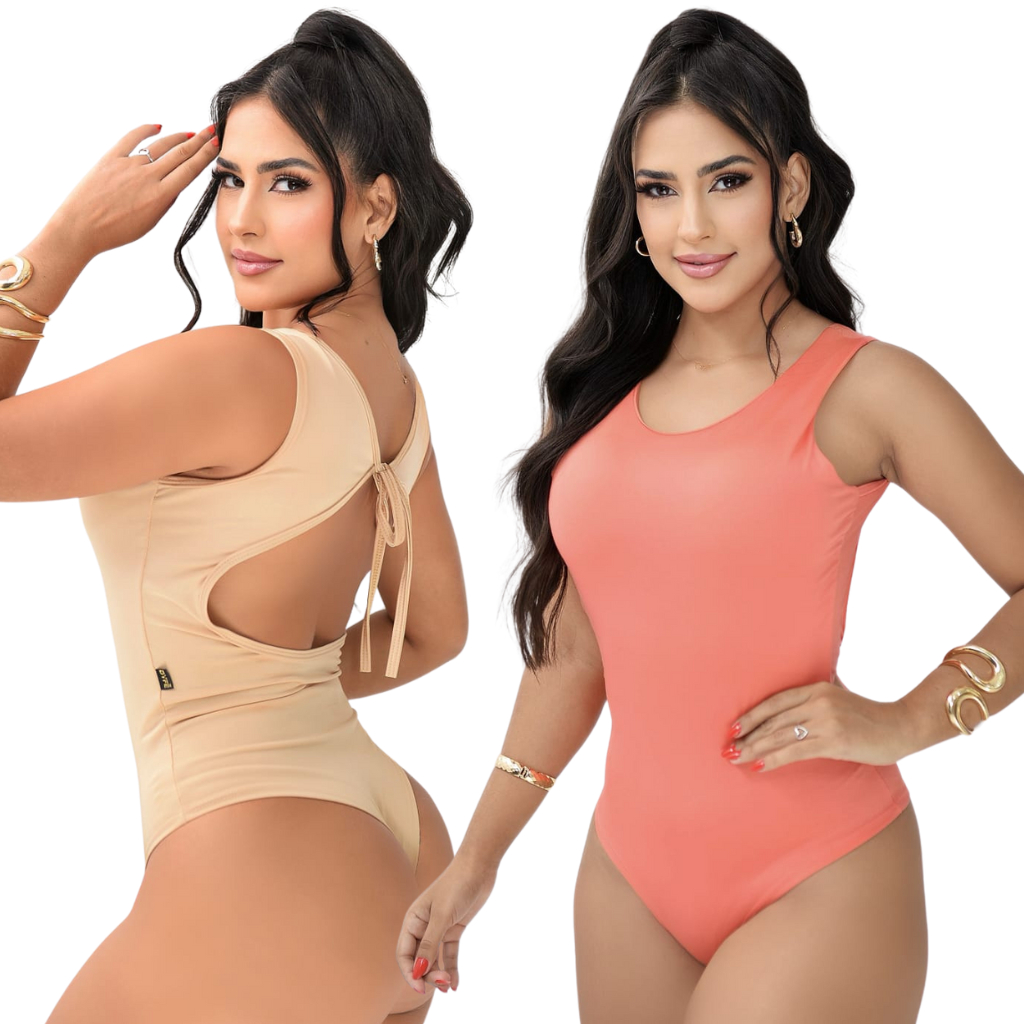 Kit 2 Body Feminino Costa Aberta Bore Maio Amarração Forro Duplo