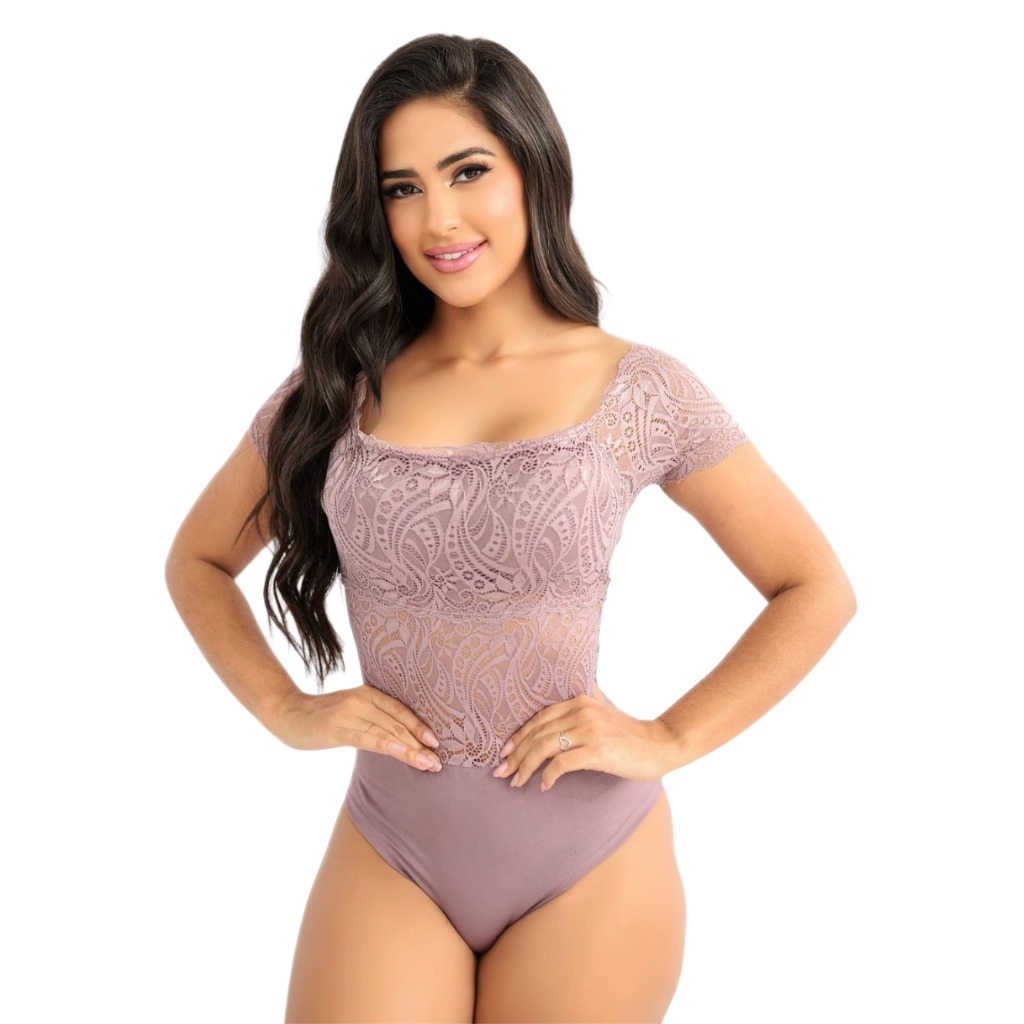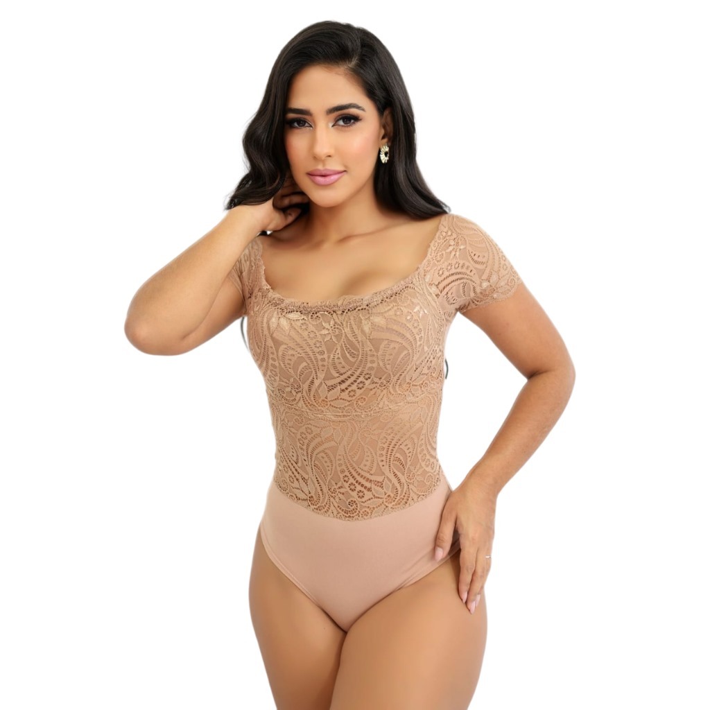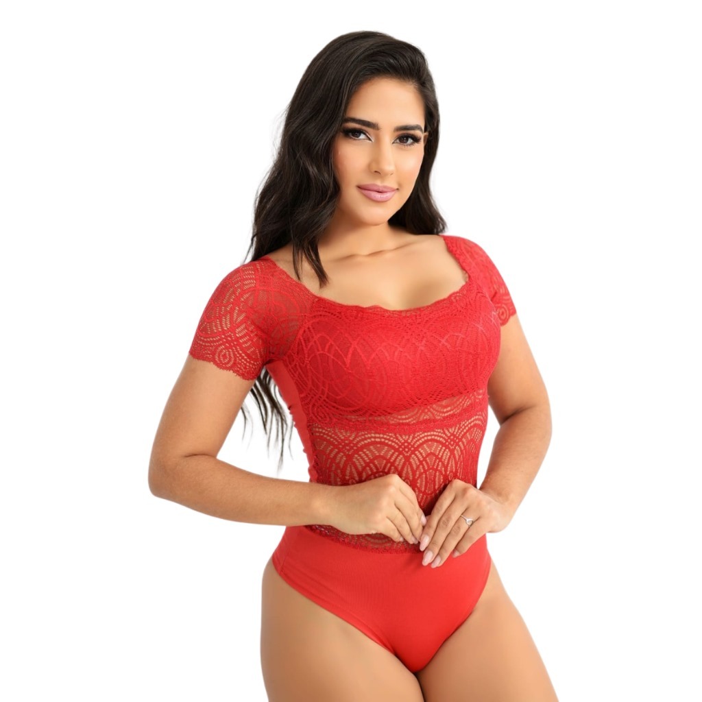 Body Feminino Body Manga Com Renda Ciganinha Ombro A Ombro