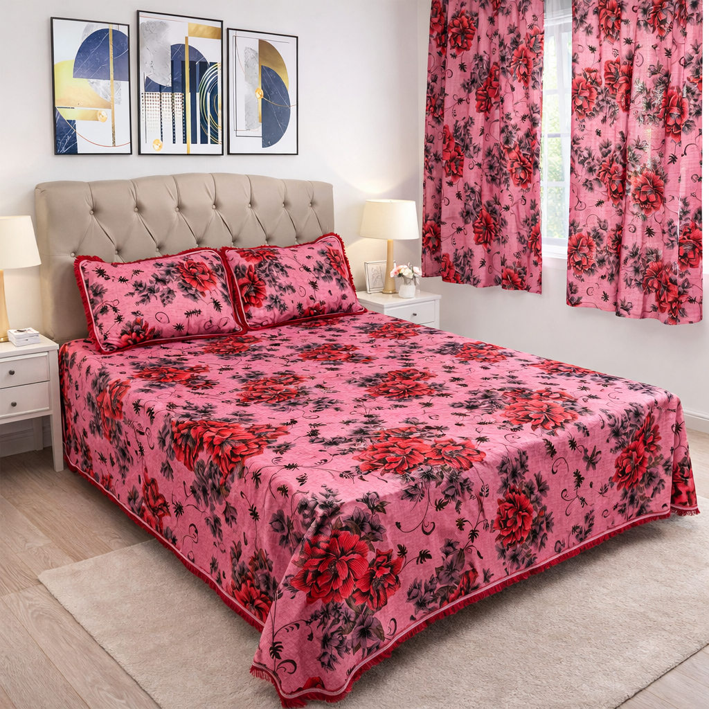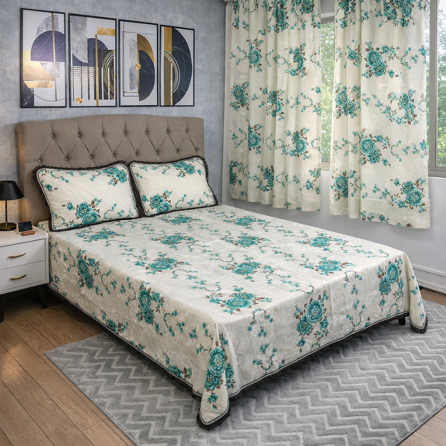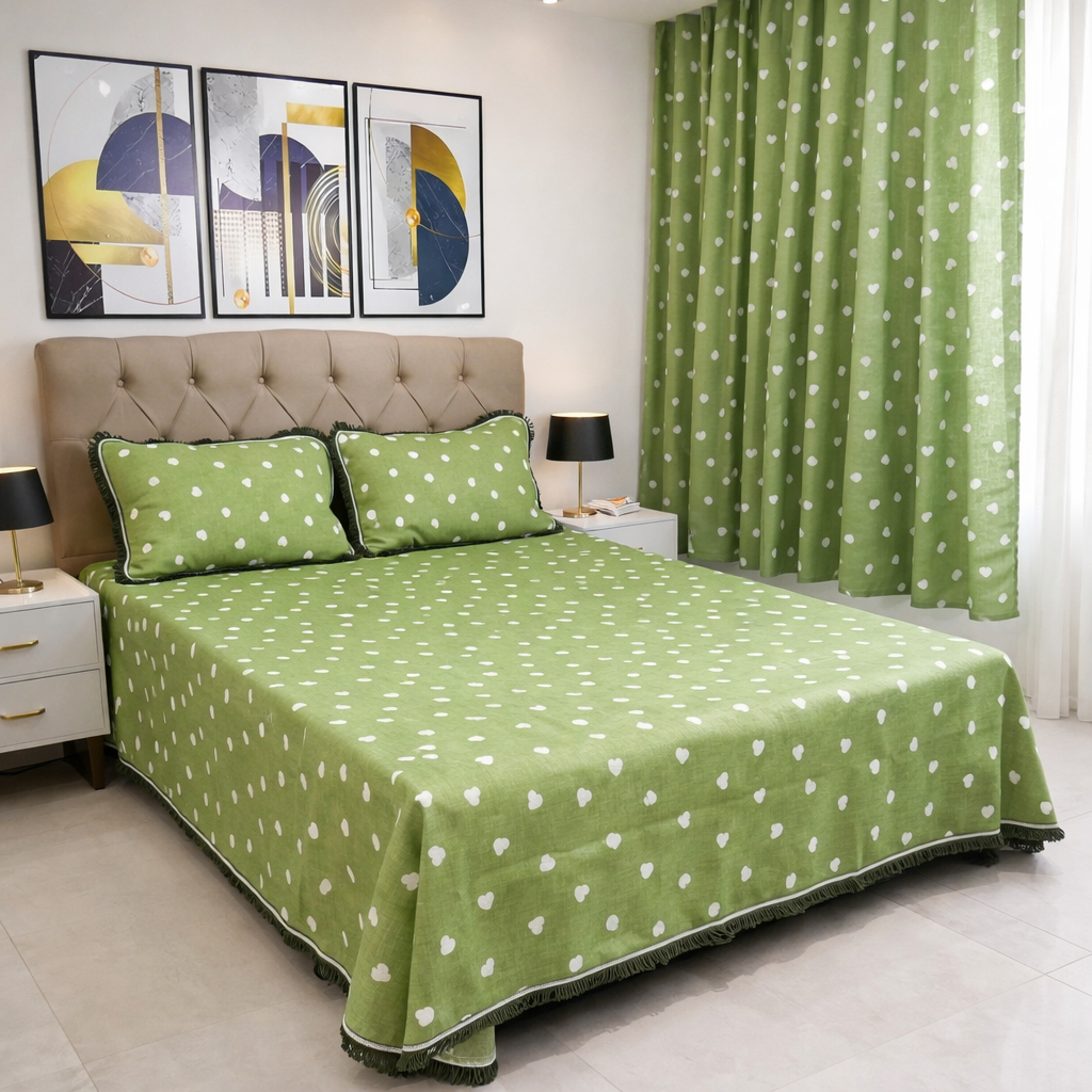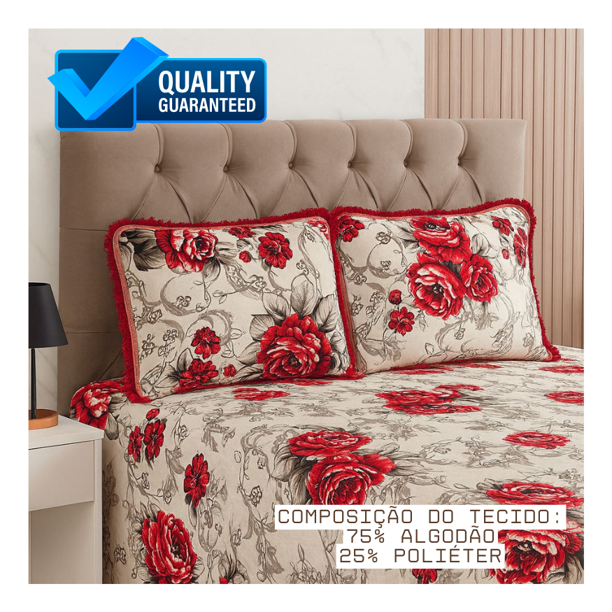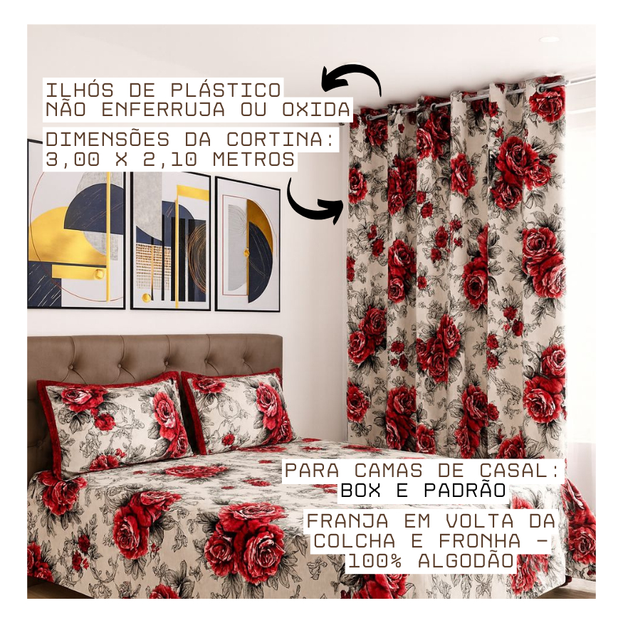 Jogo De Quarto de Linhão Casal Colcha Cortina Fronha Fronha c/ Franja 4pçs Quarto Decorado Box