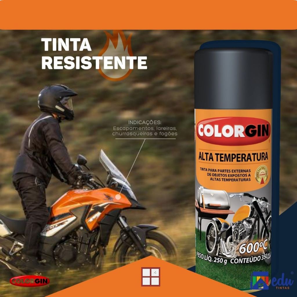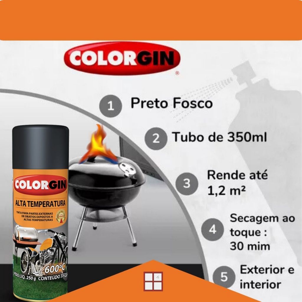 Tinta Spray Alta Temperatura Colorgin 600°C Preto fosco 350 ML