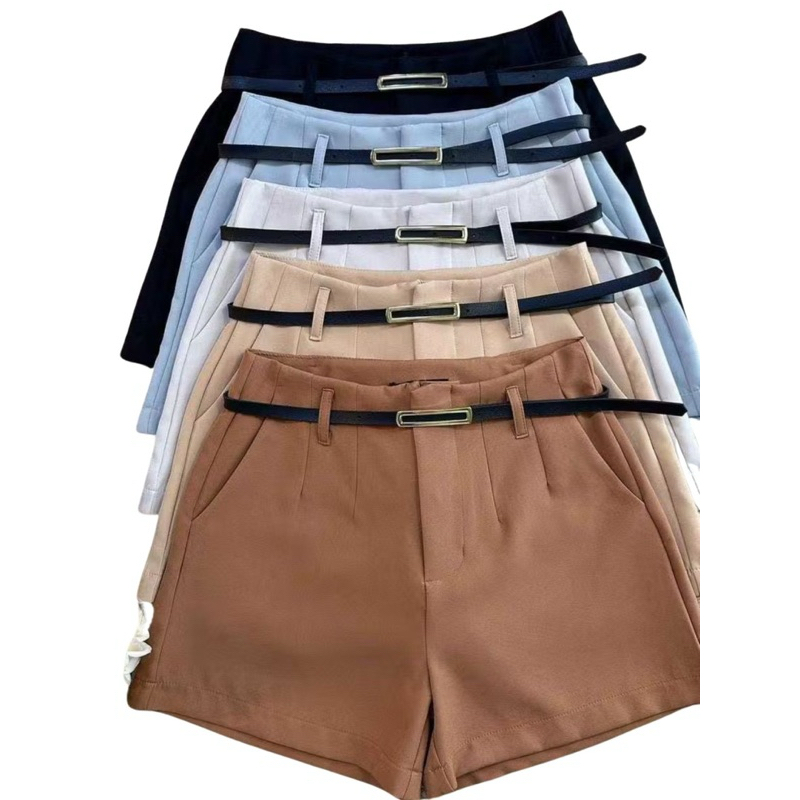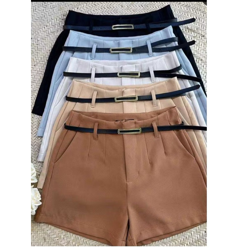 Kit 5 Shorts Feminino Alfaiataria Com Bolso e Cinto de Brinde