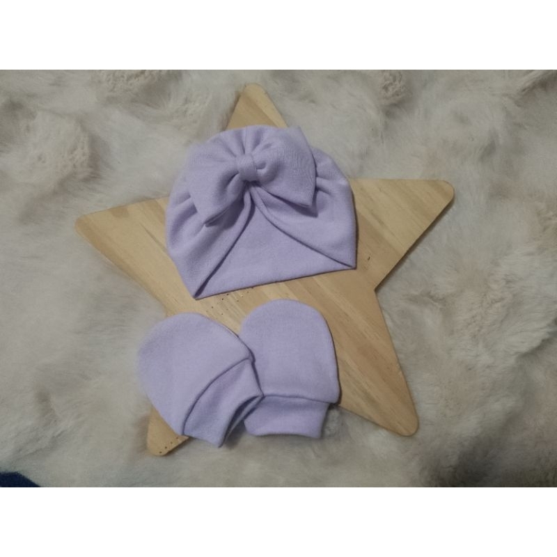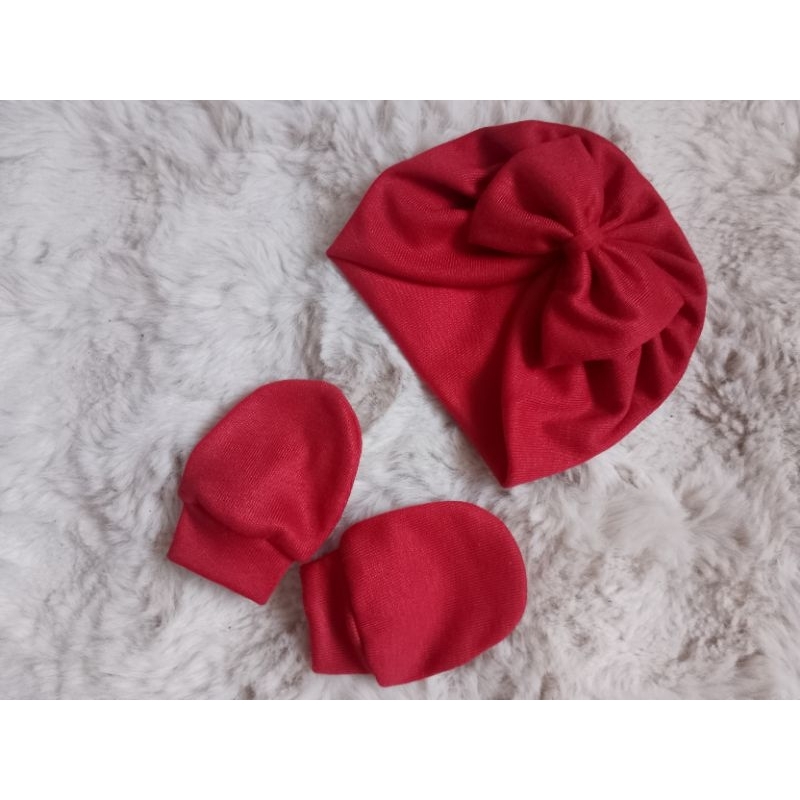 Touca turbante com laço e luvas RN