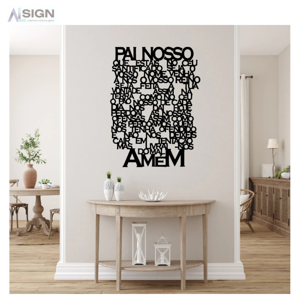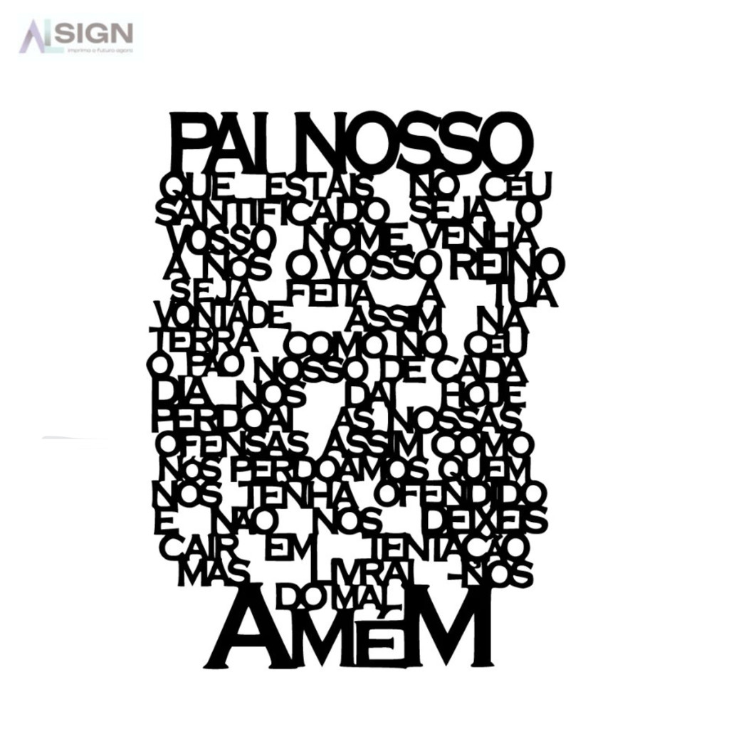 Quadro ORAÇÃO PAI NOSSO em MDF Preto Grande 90X60