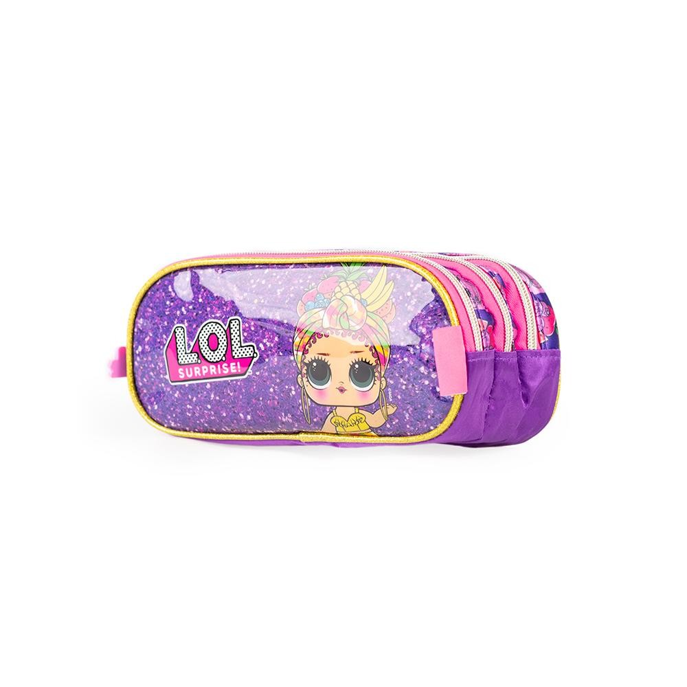 Kit Mochila Rodinhas + Lancheira + Estojo LOL Premium Roxo