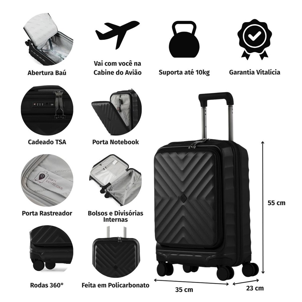 Mala de Viagem Pequena 10 Kg Policarbonato 4 Rodas Barcelona II Preta