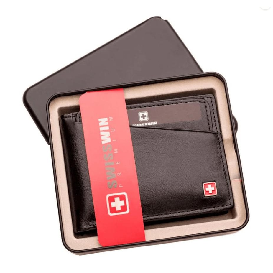 Carteira Masculina de Couro Porta Cartão Suissewin Preto