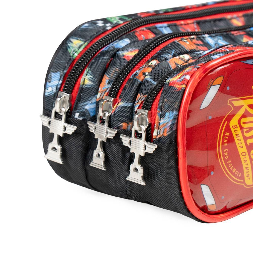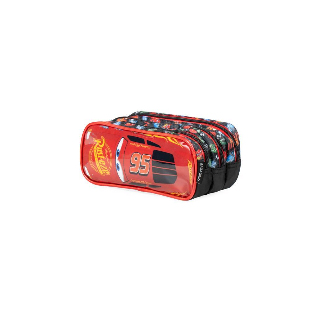 Estojo Escolar Masculino Carros 3 Compartimentos Vermelho