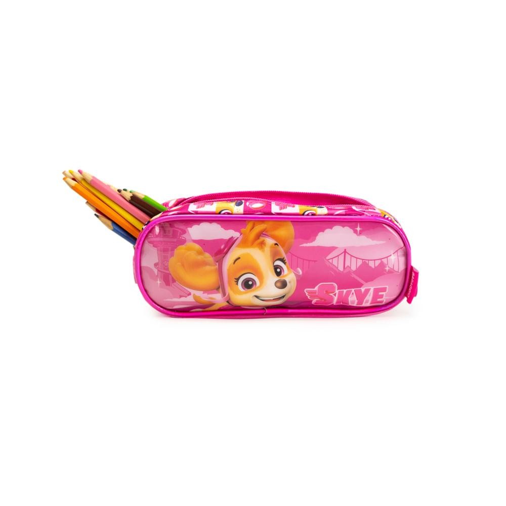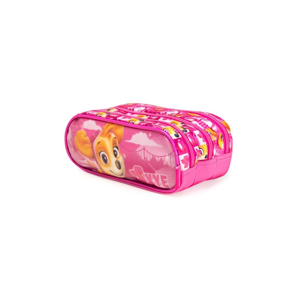 Estojo Escolar Feminino Médio Patrulha Canina Skye 3 Compartimentos Rosa