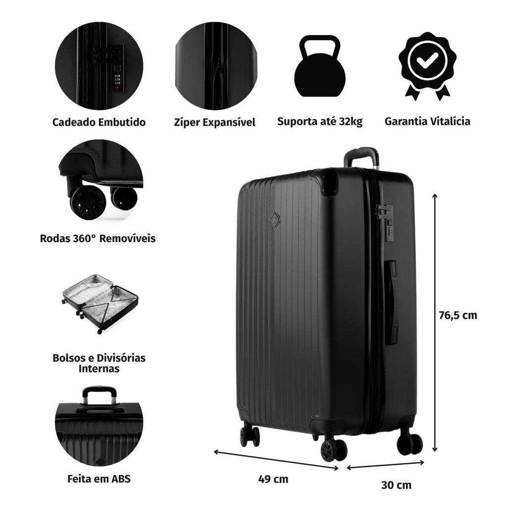 Mala de Viagem Grande 23 Kg ABS 4 Rodas Turquia II Azul Marinho