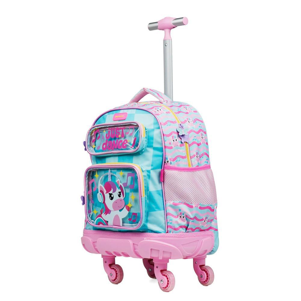 Mochila de 4 Rodinhas Feminina Unicórnio Just Dance Verde Água