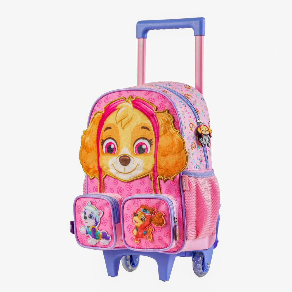 Mochila de Rodinha Feminina Infantil Patrulha Canina Skye Baby Rosa Claro