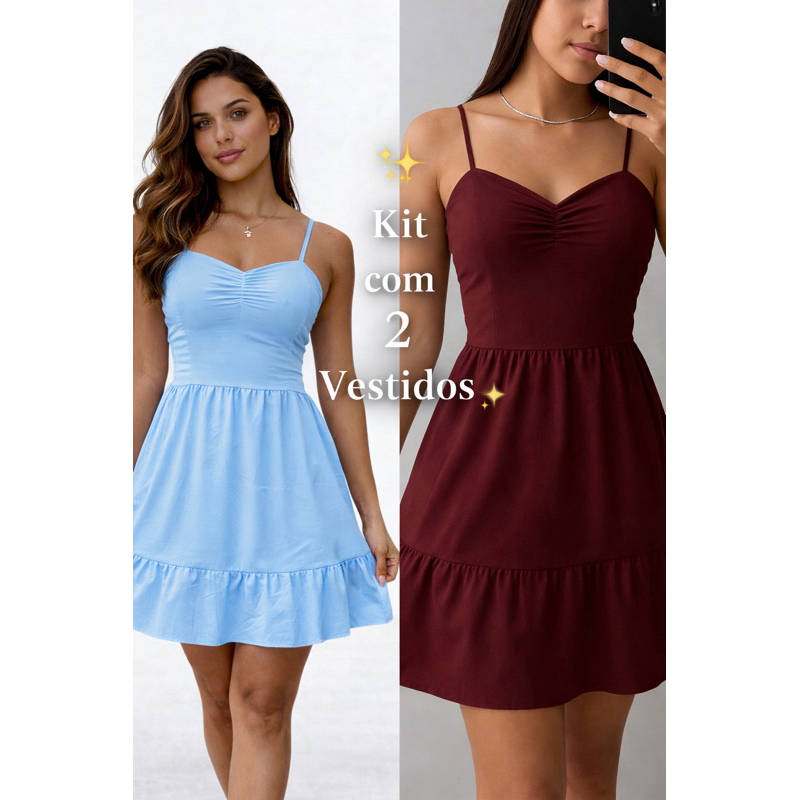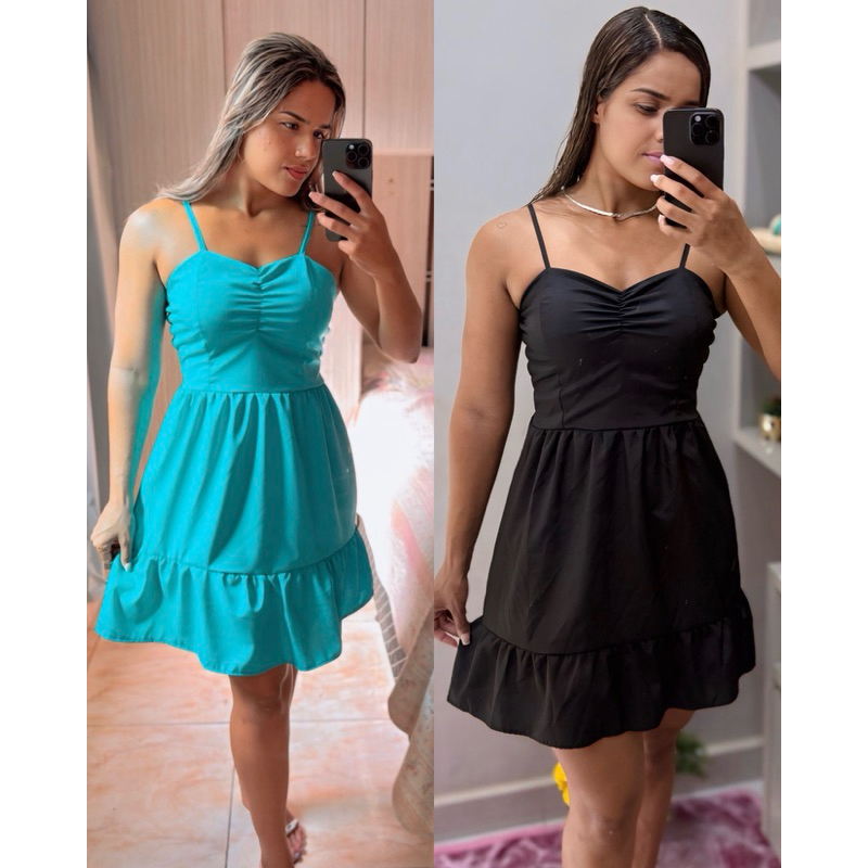 Vestido curto de alcinha soltinho estilo paty elegante mídi confortável