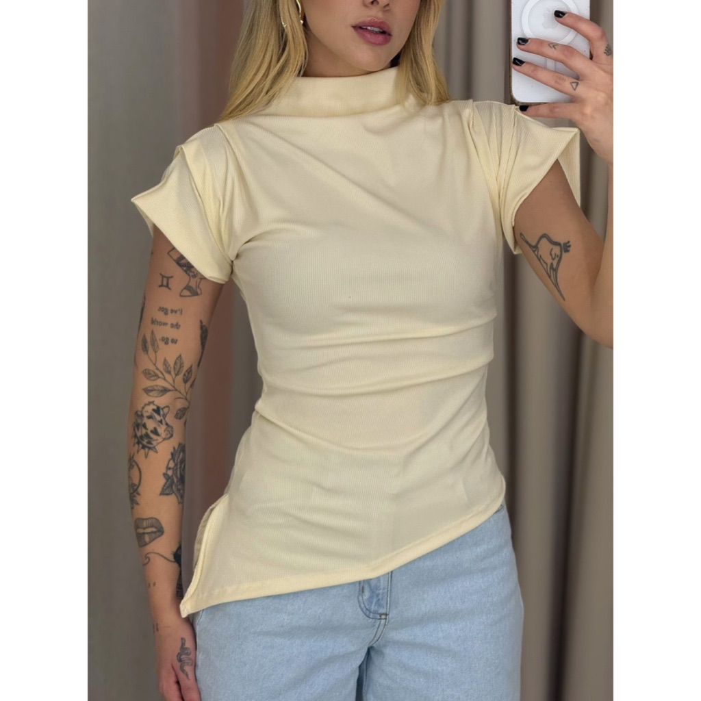 Blusa Feminina Assimétrica Ribana Canelada Básica e Moderna Conforto e Estilo Verão 2026