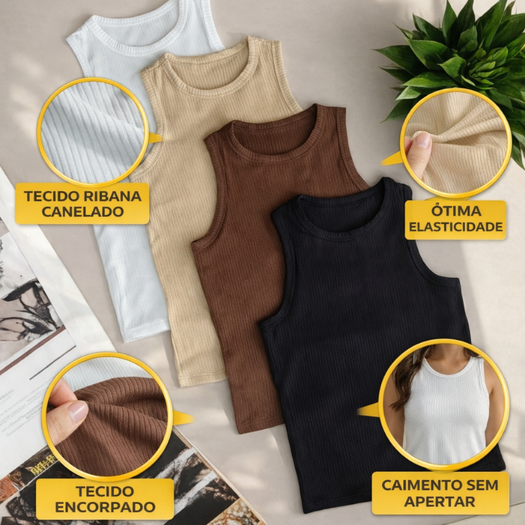 Kit 4 Regata Feminina Canelada Ribana Básica Moda Gringa Verão