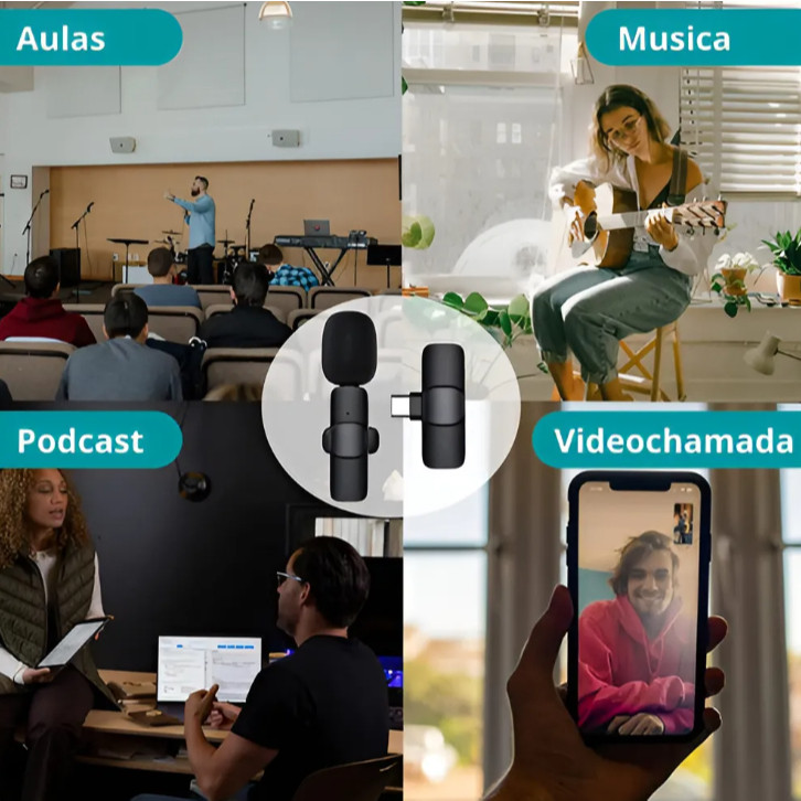 Microfone de Lapela Sem Fio Vlog Live Entrevista Portatil Compatível Tipo C e iPhone - Mihou.se