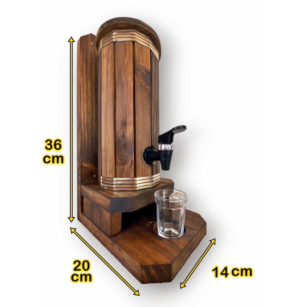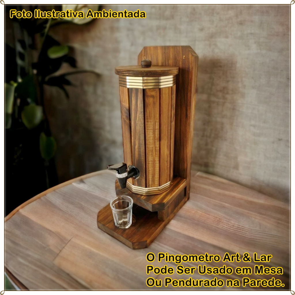 Pingometro Madeira Barril 1L Cachaça Pinga Bebidas + 1 Copo Shot 70ml Adega