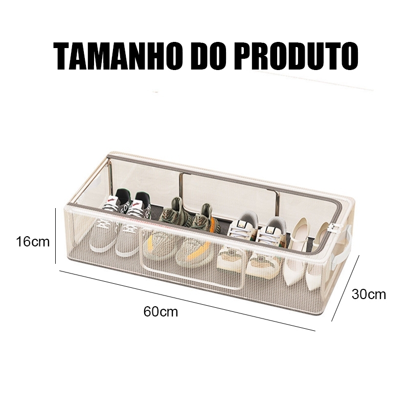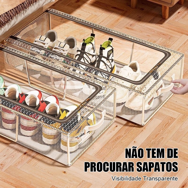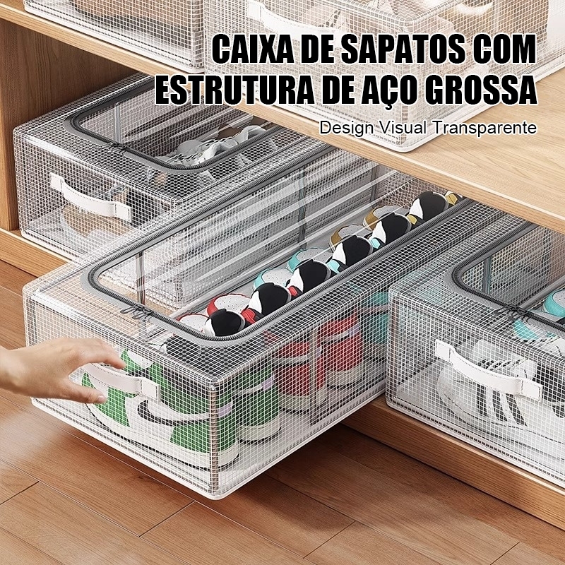 Caixa de sapatos dobrável com zíper, sapateira transparente, empilhável