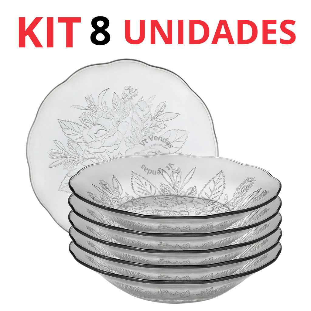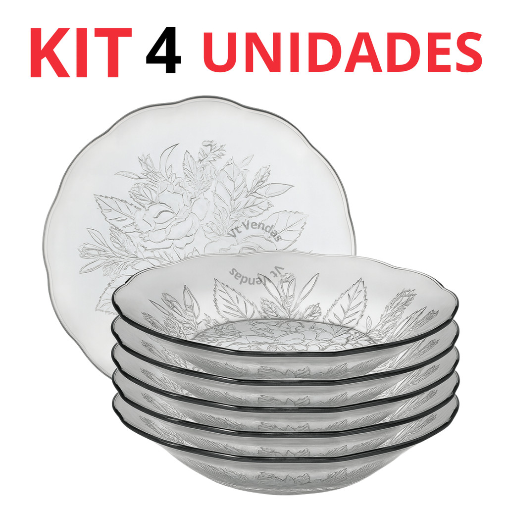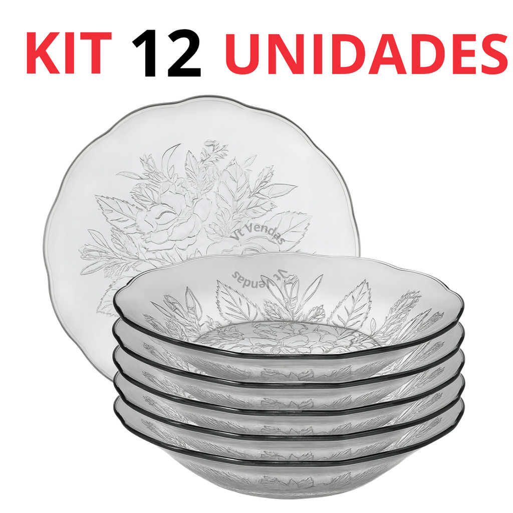 Jogo De Pratos Vidro Fundos 4 a 12 Peças Em Vidro Transparente Para Almoço/ Jantar Bem Embalado