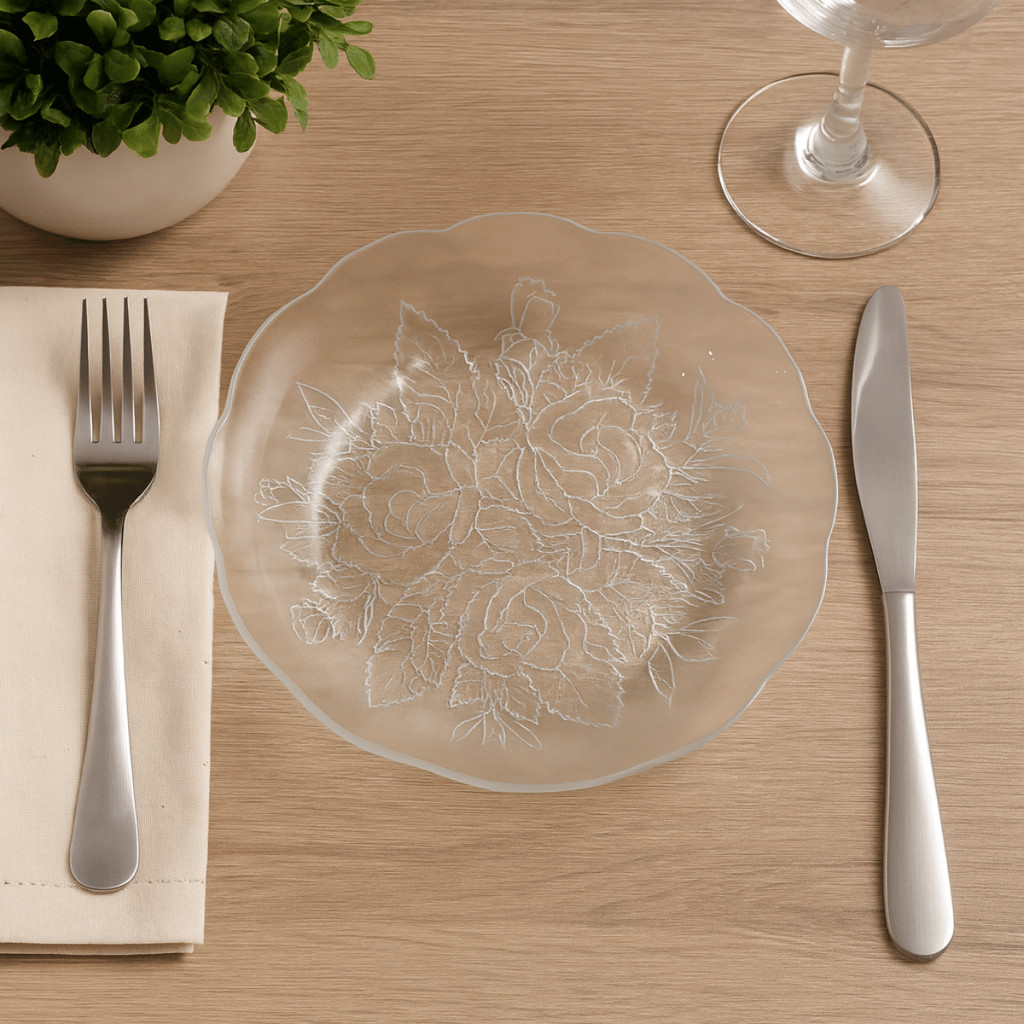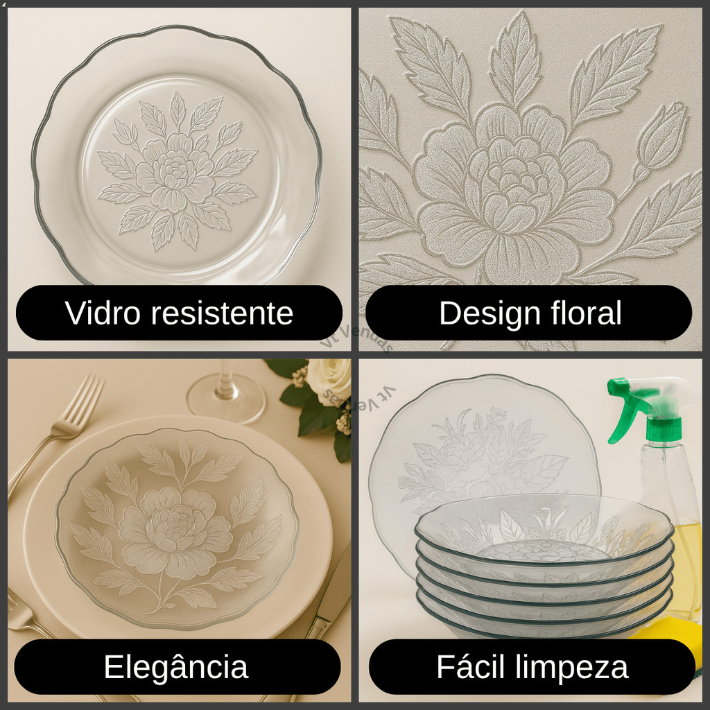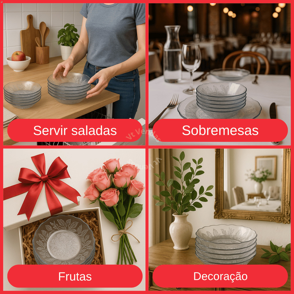 Jogo De Pratos Vidro Fundos 4 a 12 Peças Em Vidro Transparente Para Almoço/ Jantar Bem Embalado