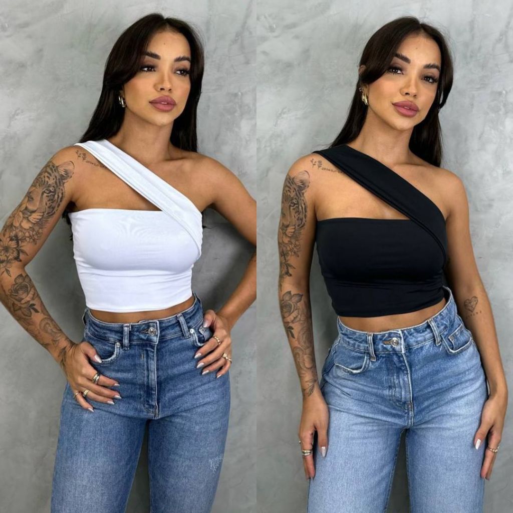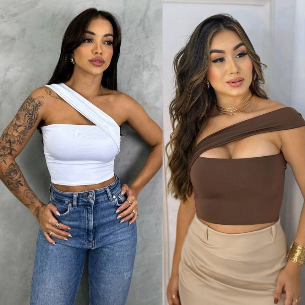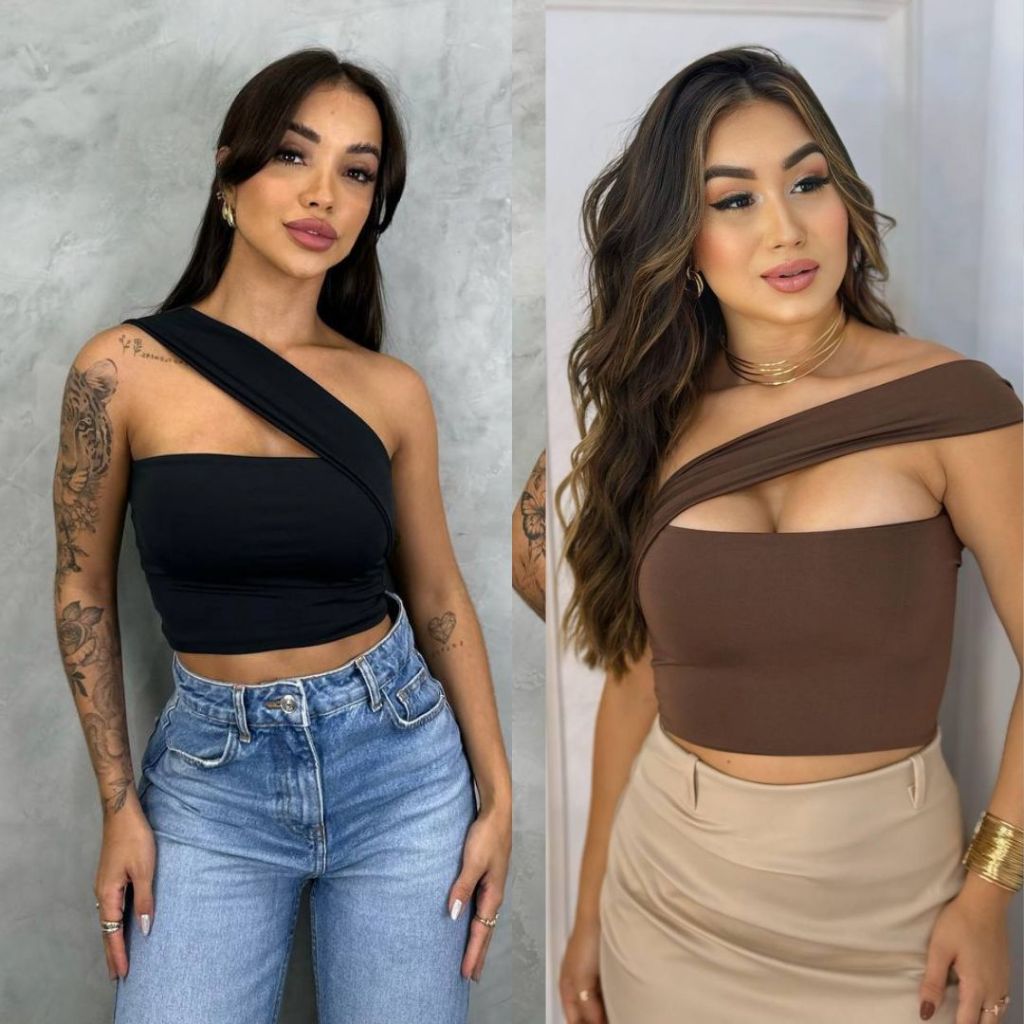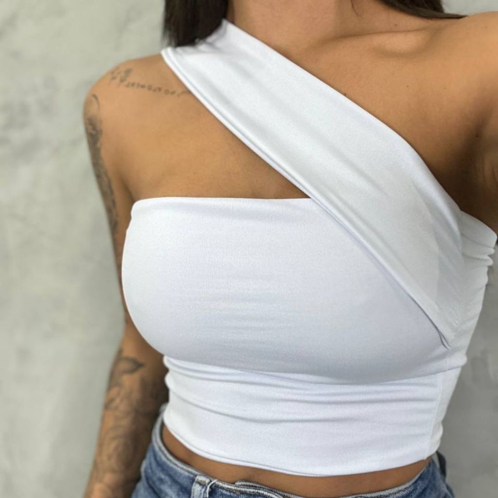 Top Cropped Feminino Suplex Alça Ombro Lateral Forro Duplo Moda Gringa