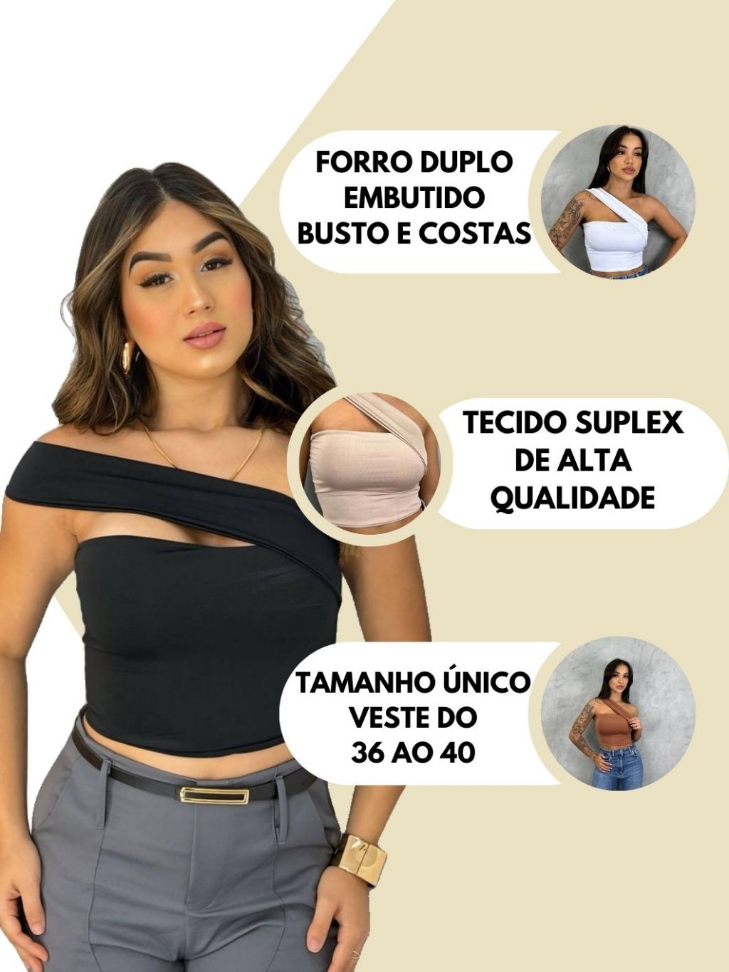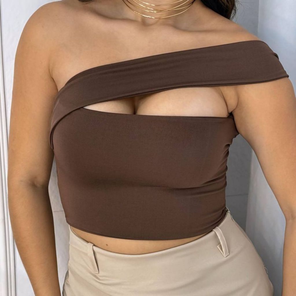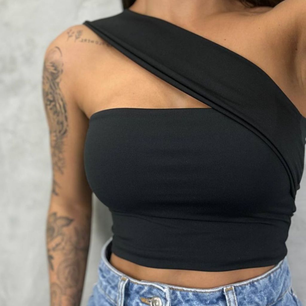 Top Cropped Feminino Suplex Alça Ombro Lateral Forro Duplo Moda Gringa