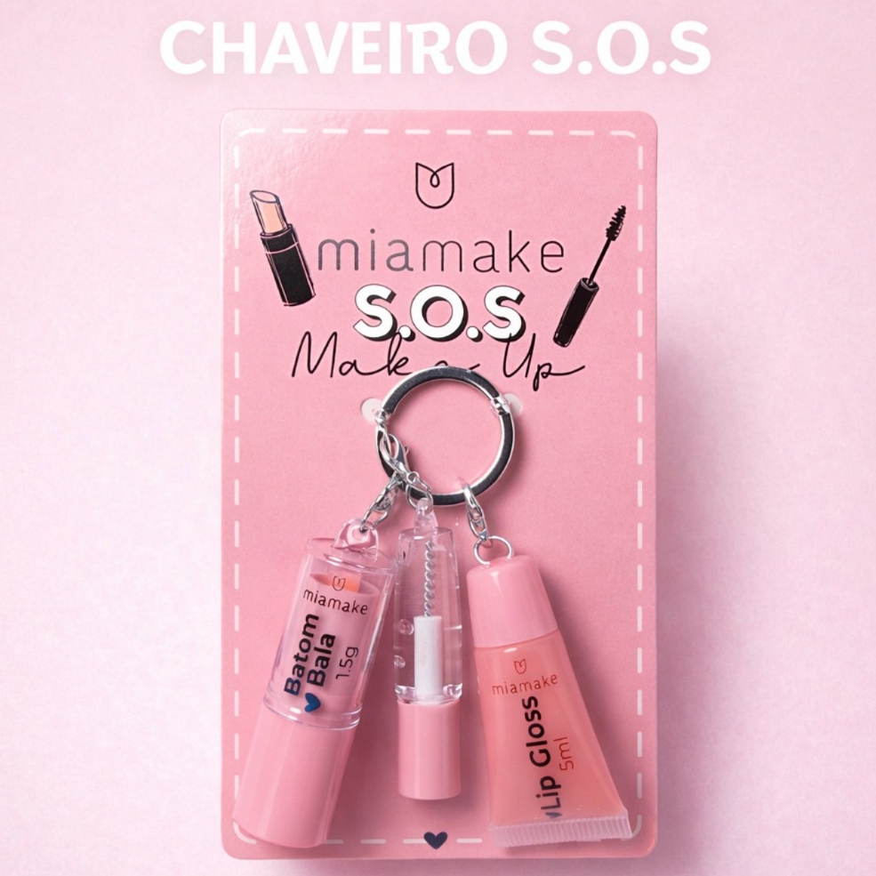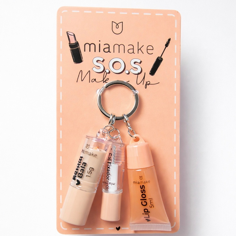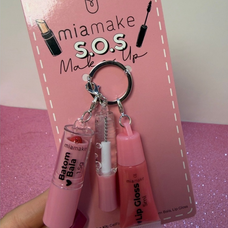 Kit Chaveiro S.O.S Maquiagem com Batom, Lip Gloss e fixador de Sobrancelhas – Miamake
