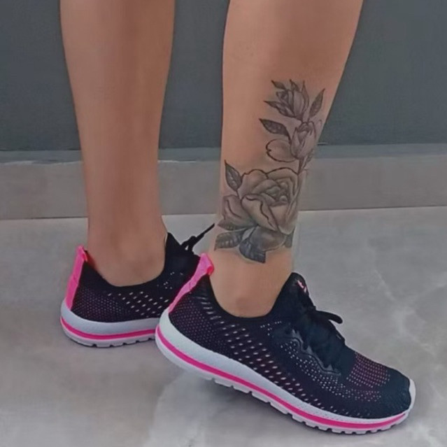 Tenis Feminino Meia Academia Caminhada Branco Preto Leve Macio Confortavel Casual Atitude Criança e Adulto