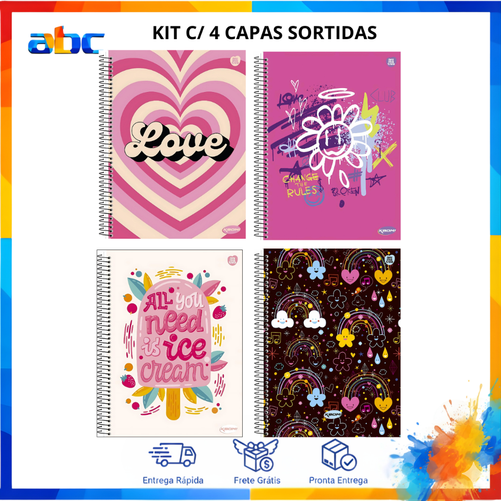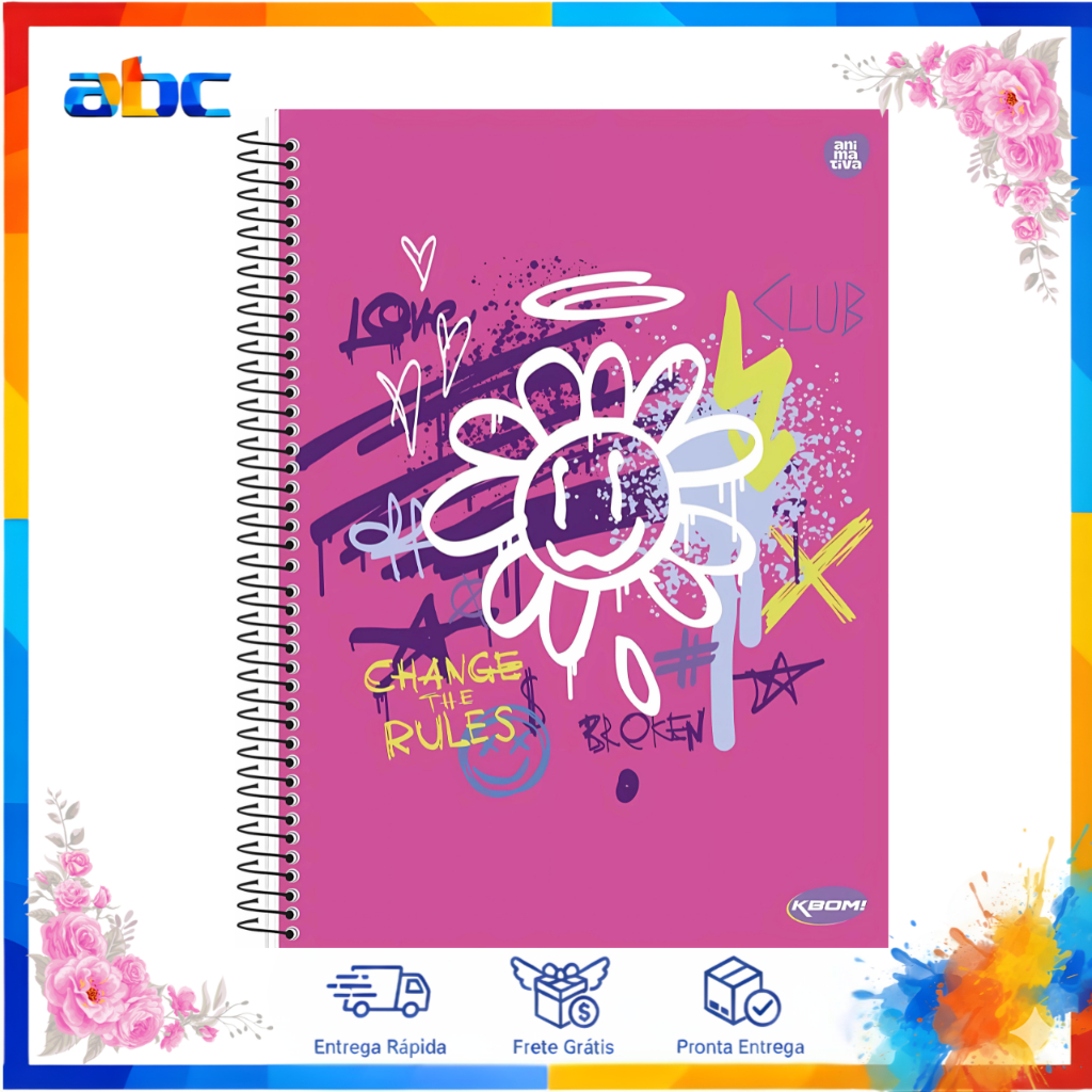Caderno Universitário 15 Matérias Kbom Feminino 300 Folhas