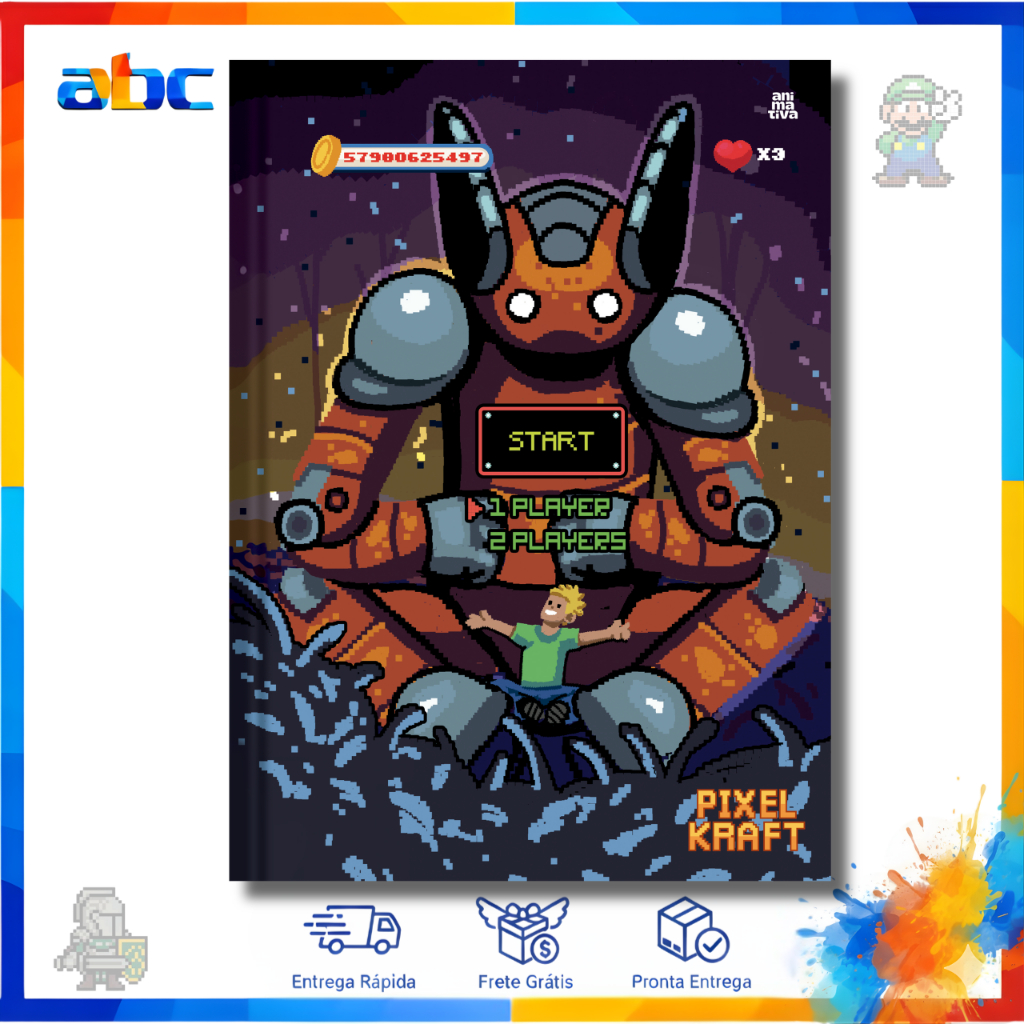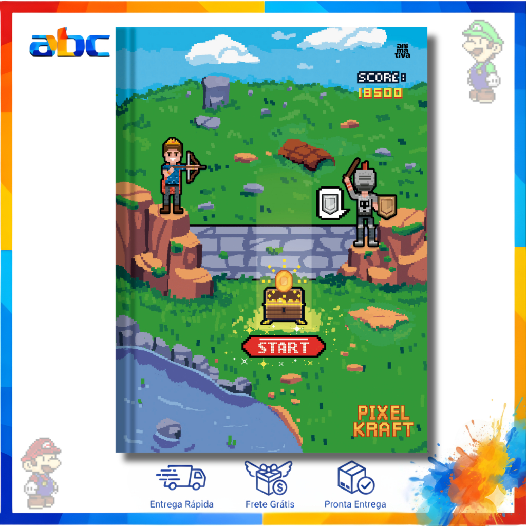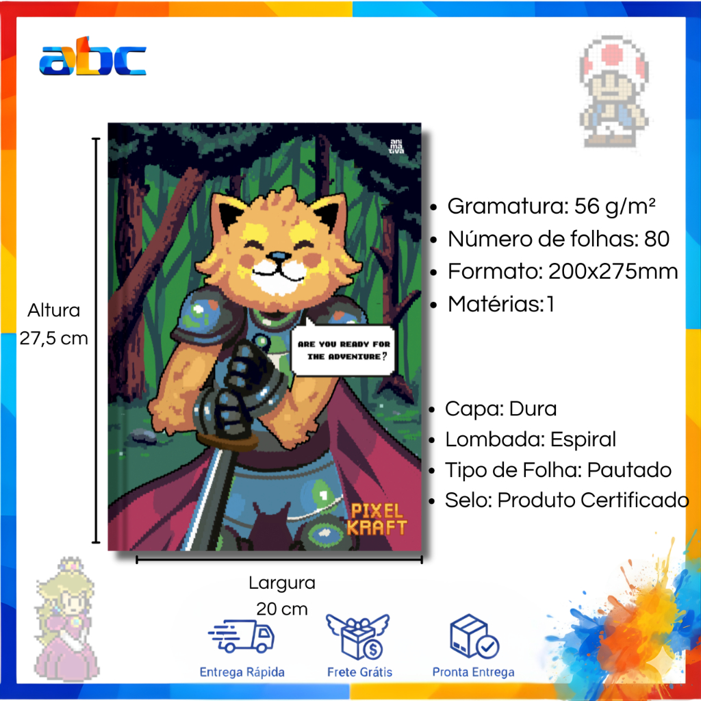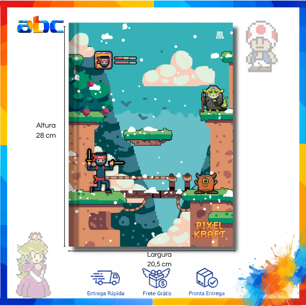 Caderno Pixel Kraft Capa Dura 80 Folhas Escolar Brochura Masculino - Animativa