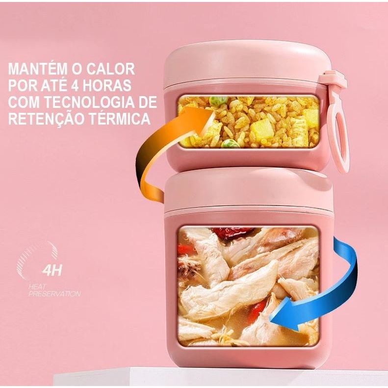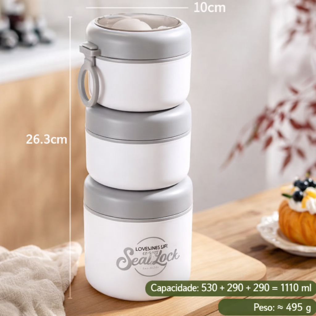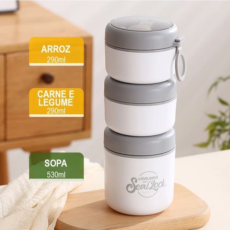 Kit até 3 Marmitas Inox 304 com Isolamento Térmico – 290ml a 530ml – Escolha o Kit Desejado