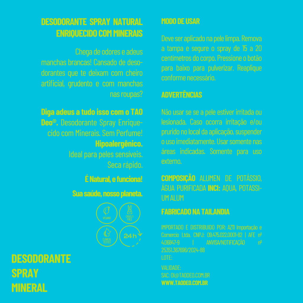 Desodorante Natural Spray 100ml Tao Deo Sem Cheiro Vegano e Hipoalergênico Proteção 24h