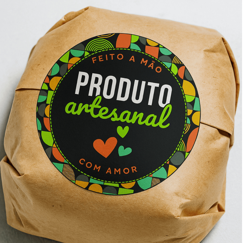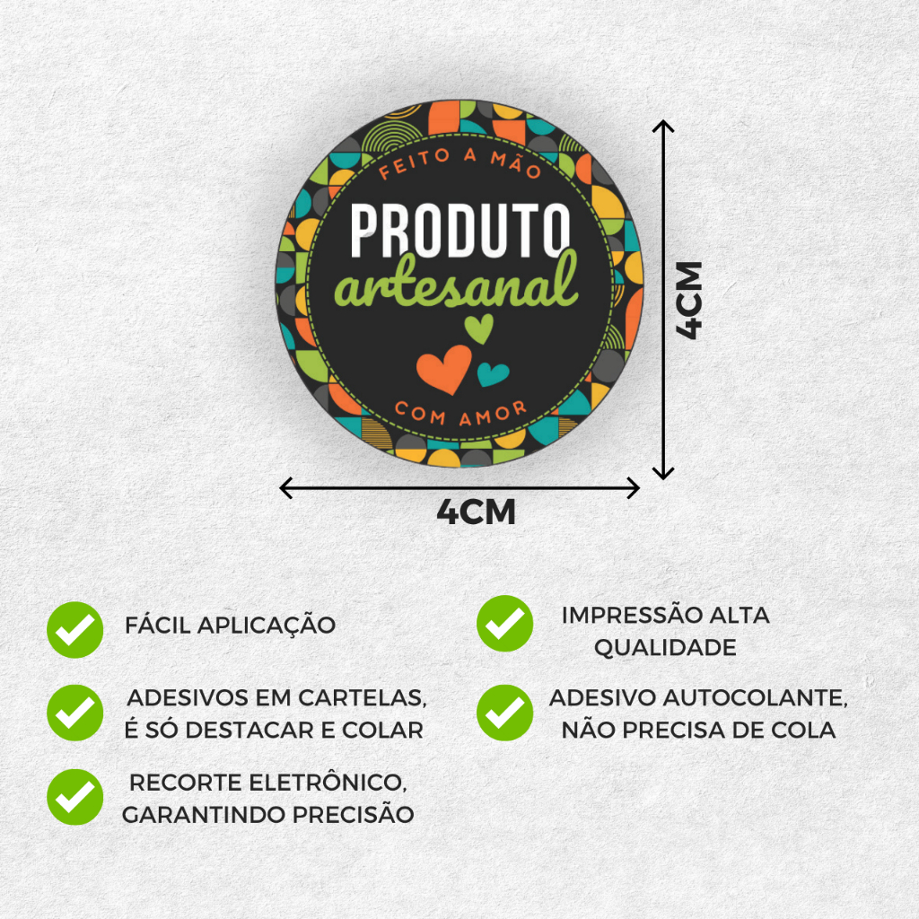 Adesivo Etiqueta Produto Artesanal Feito a mão com Amor - 4x4cm