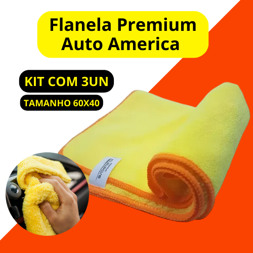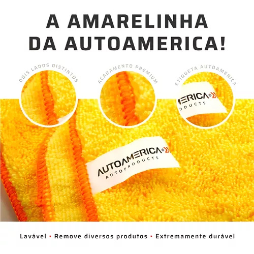 Kit Flanela Amarela De Microfibra Autoamerica 60x40 Premium