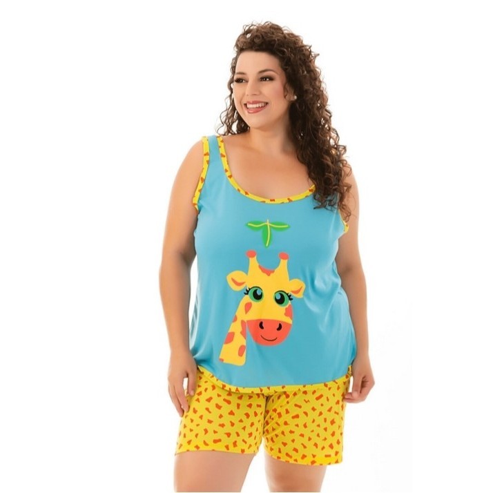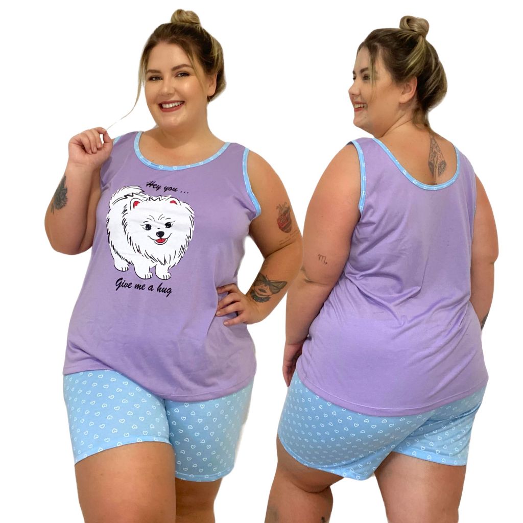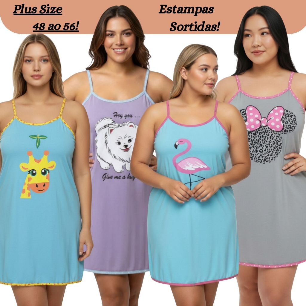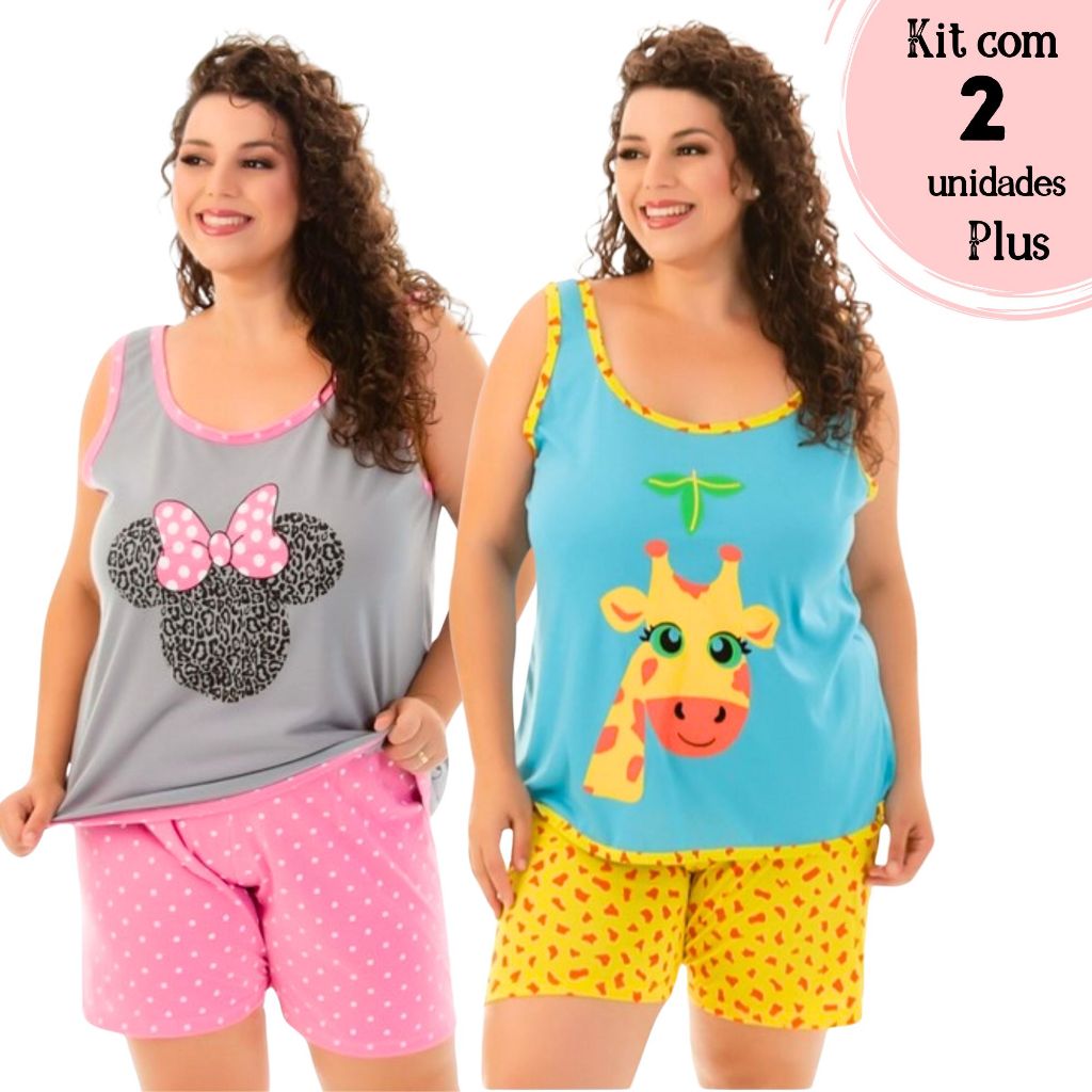 Baby Doll Plus Size Kit com 2 Pijamas Regata em malha Estampas Sortidas (48/50/52/54/56)