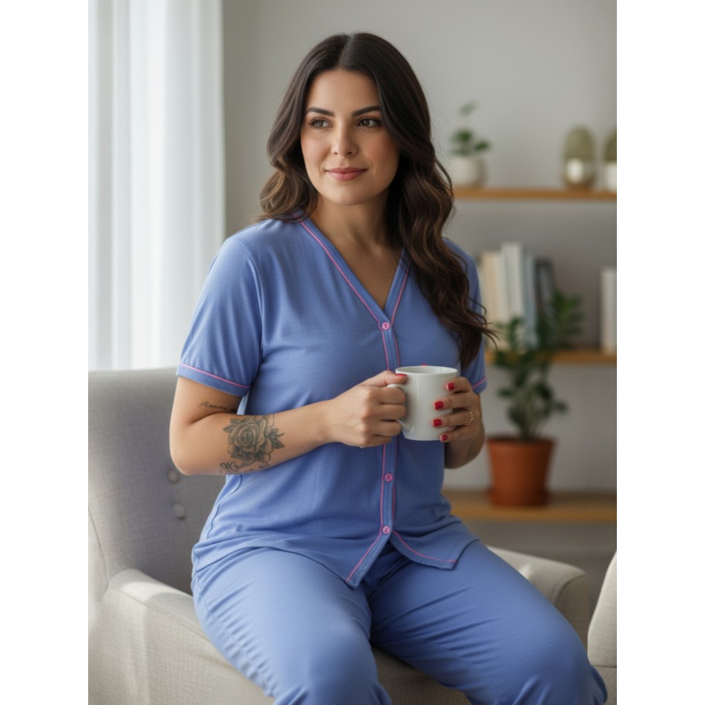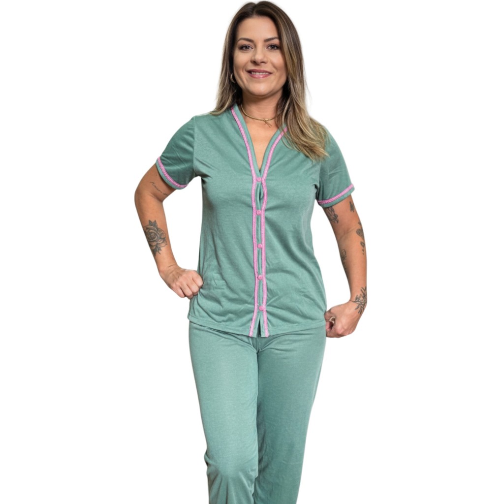 Pijama Feminino Amamentação de botões Cirurgico em Malha Premium Pós Parto