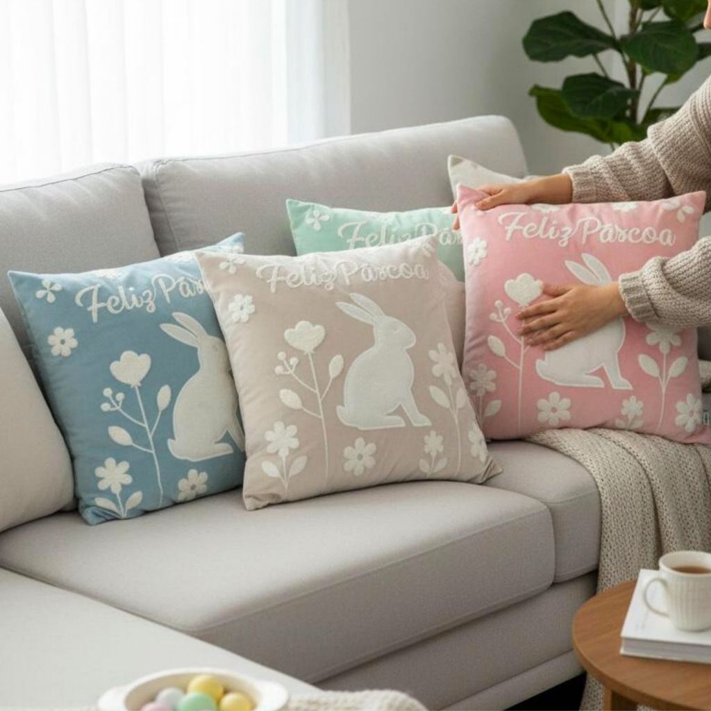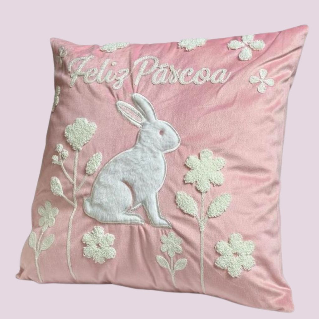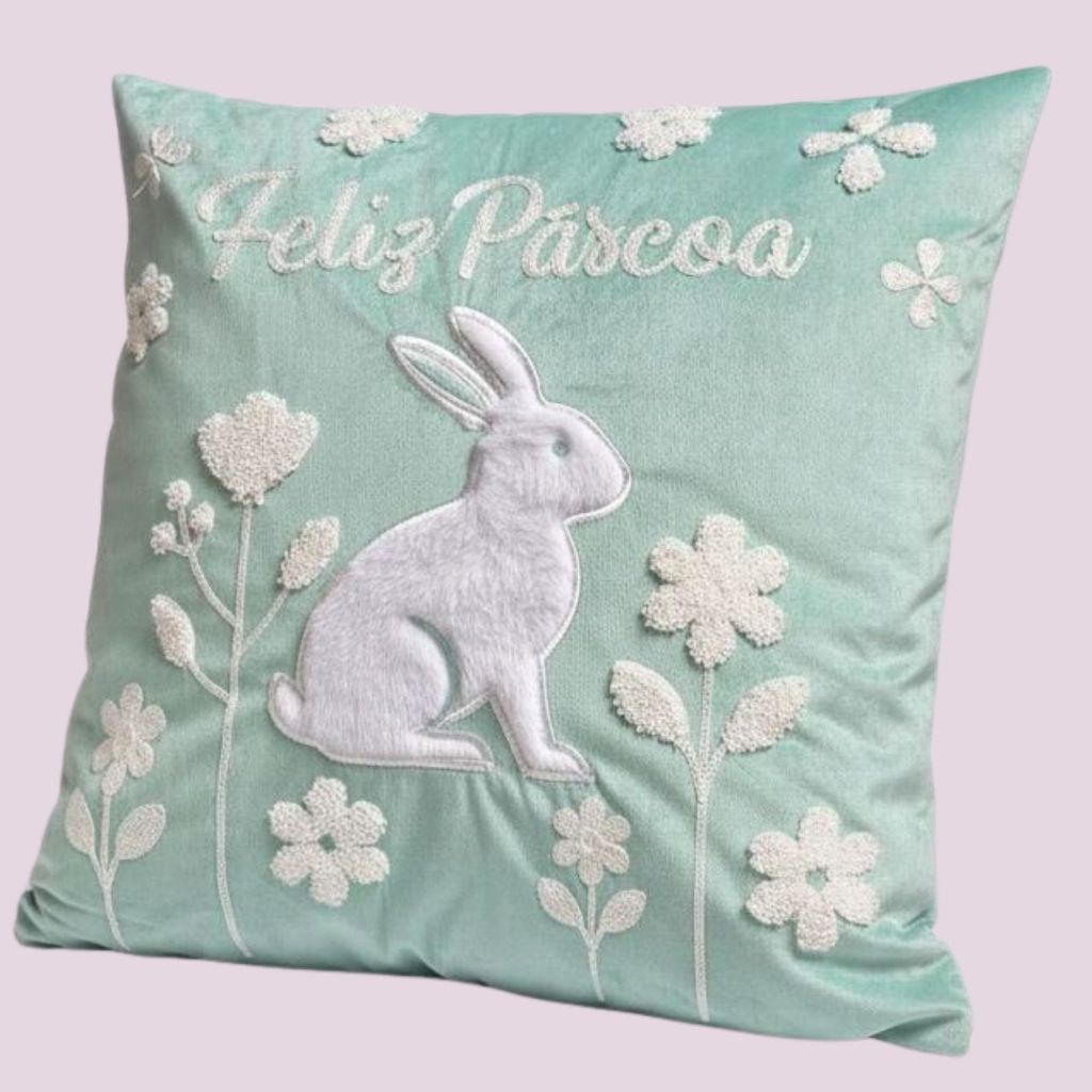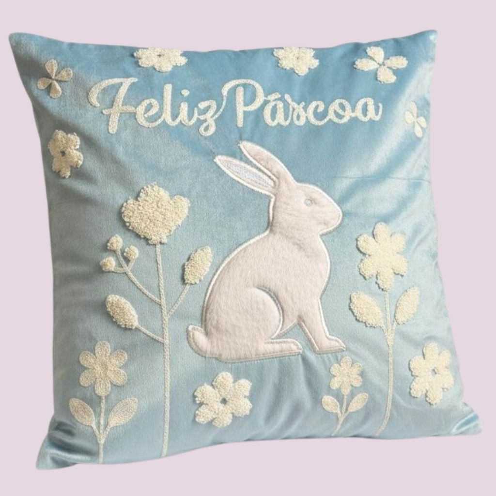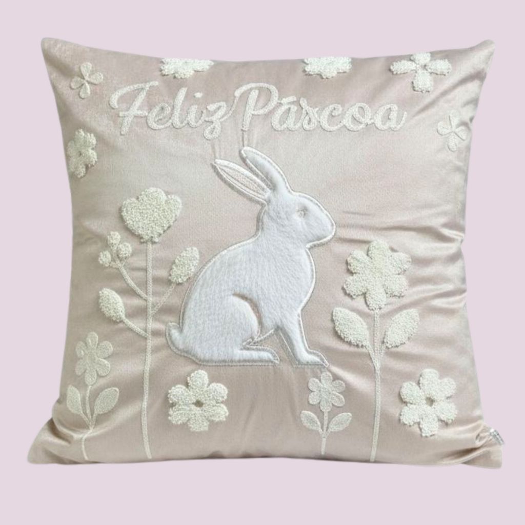 Capa de Almofada Bordada Páscoa 43x43cm Decorativas para Quarto Sala e Decoração