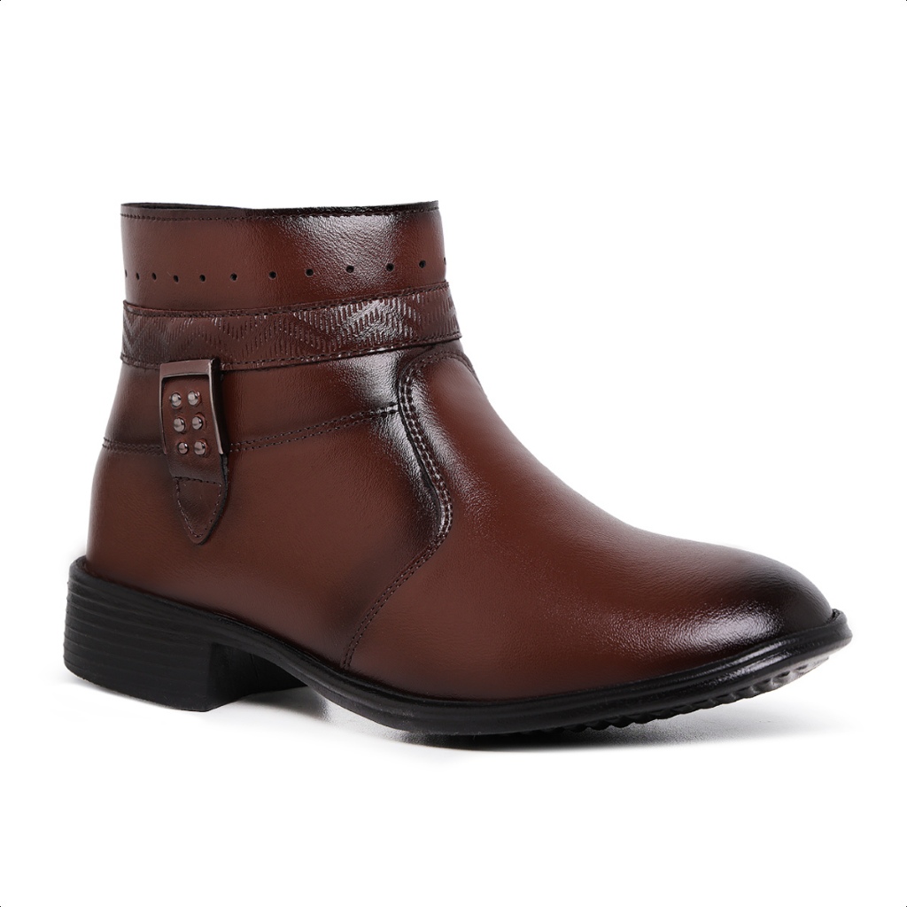 Bota Feminina Cano Baixo Marrom Café/ Preto | Botinha Confortável 2025 Casual Elegante com Zíper