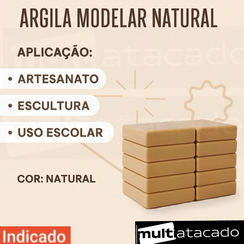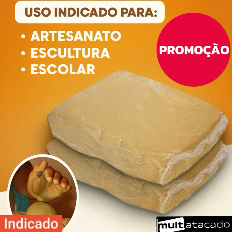 KIT até 4,3,2,1 Argila Escolar Natural 1kg Para Artesanato E Modelagem Argila Natural P/ Modelar Escultura Escolar