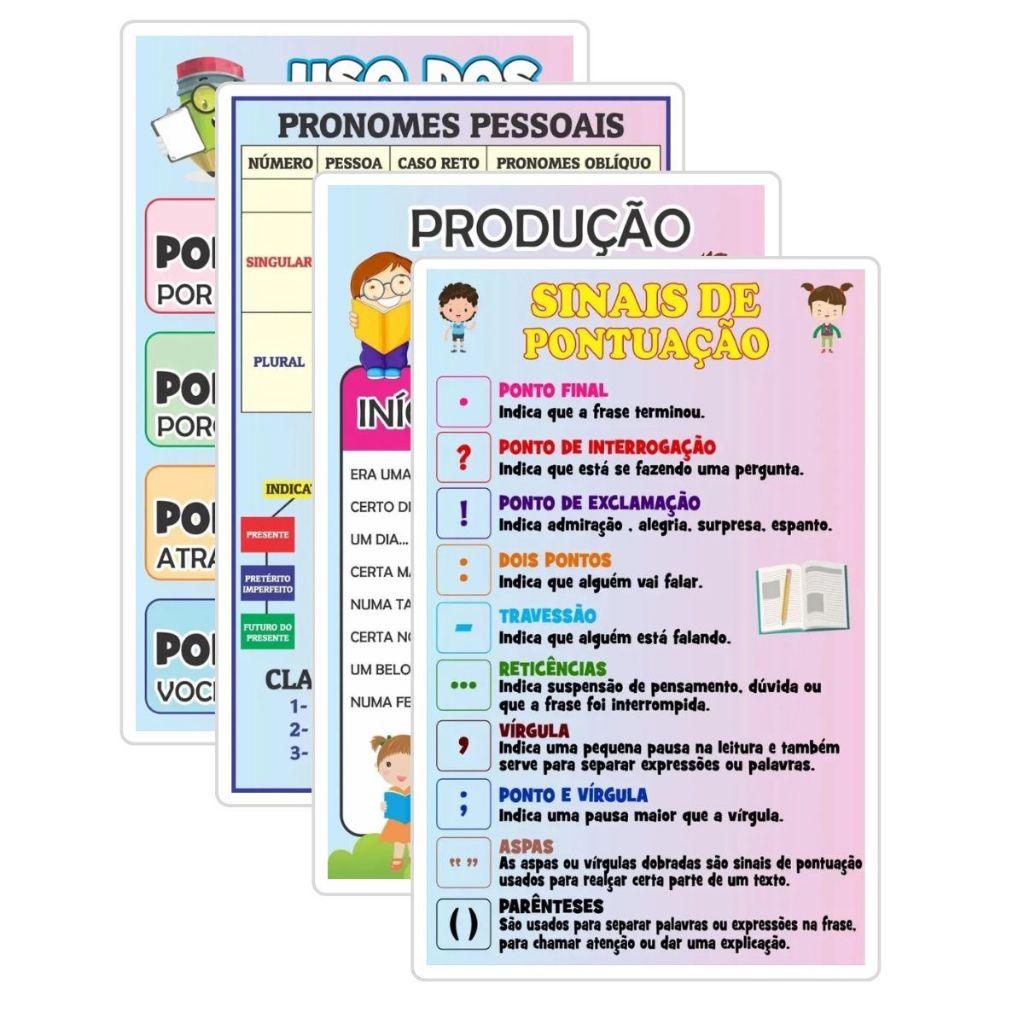 Kit 4 Tabelas Produção Textual - Plastificado A4 ou A3 - Educar e Aprender Escolar