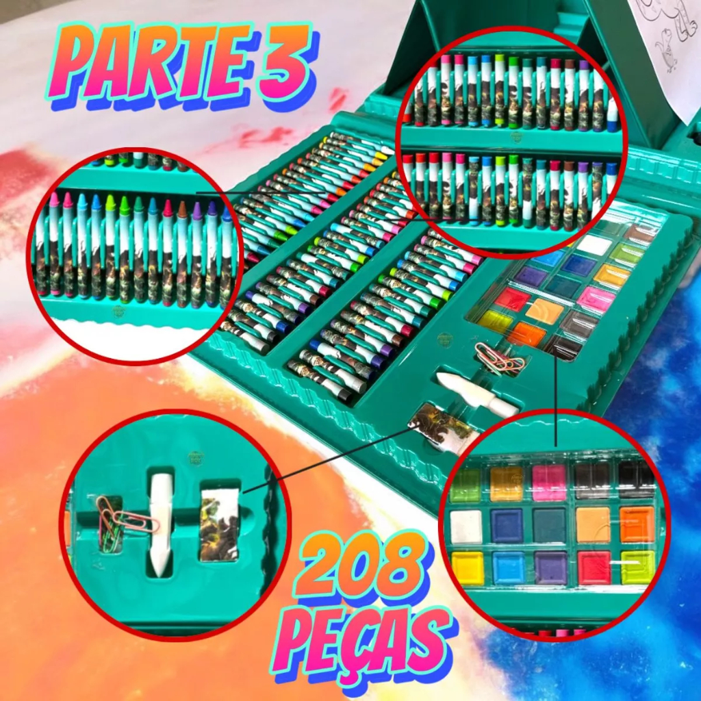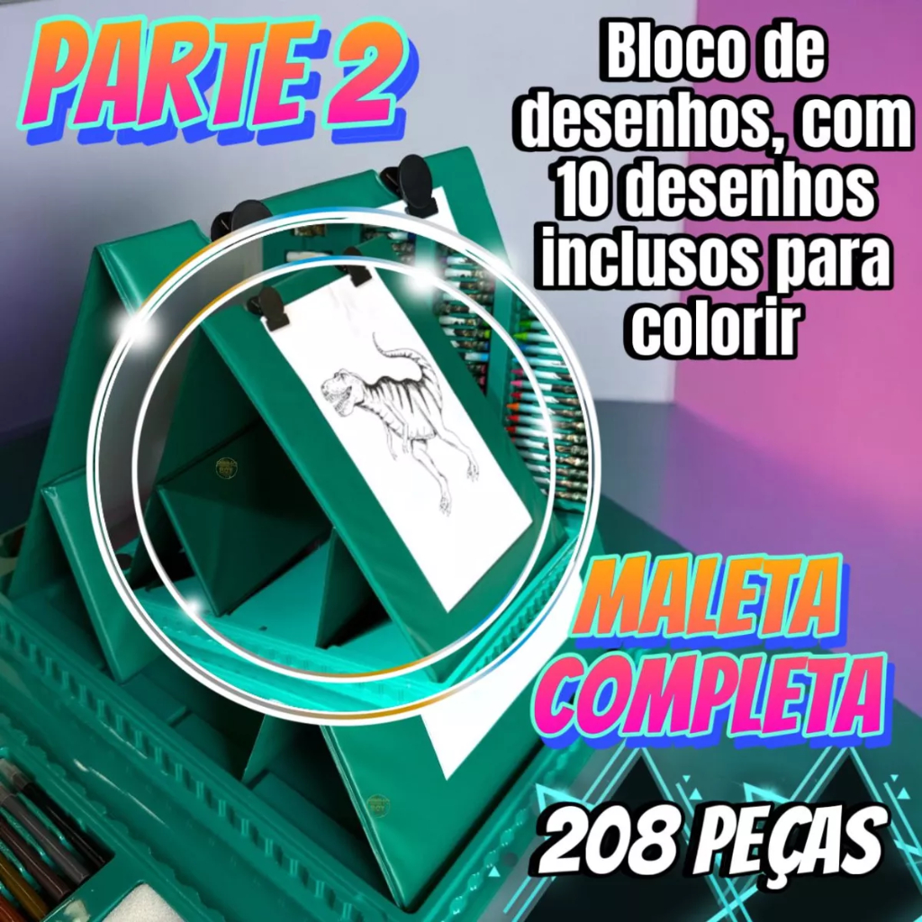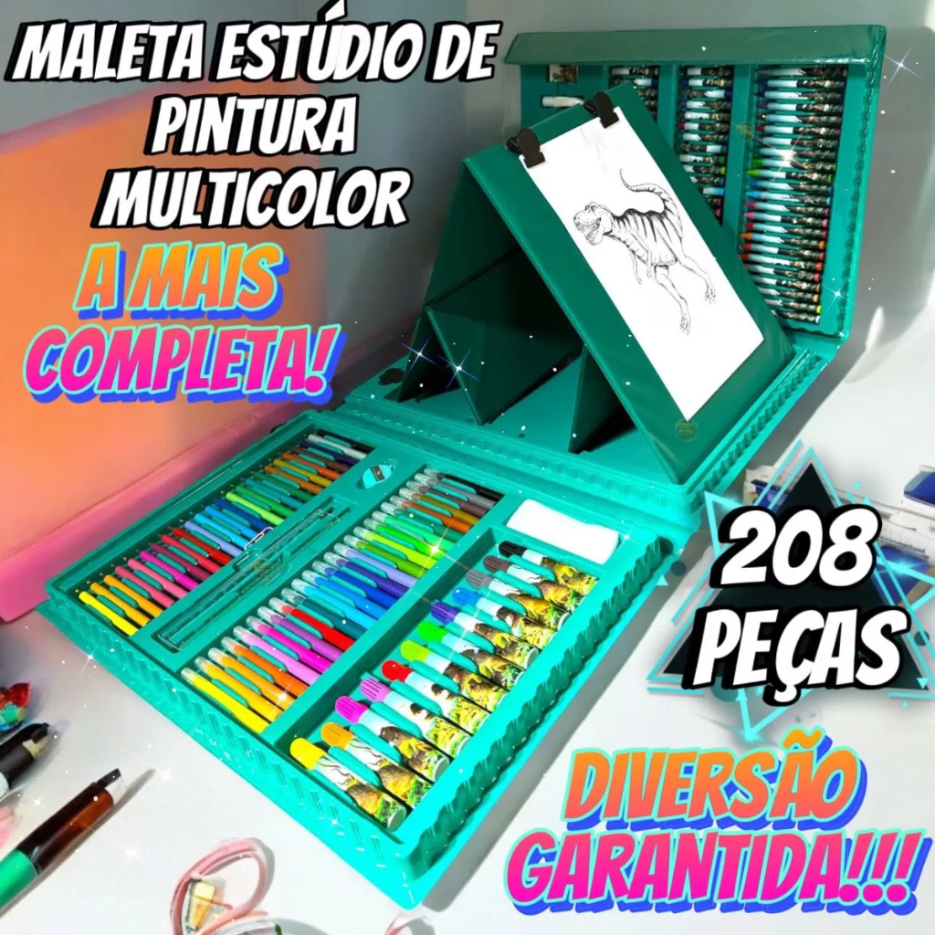 Estojo Maleta 208 Peças Infantil Dinossauro Escolar Pintura Menino