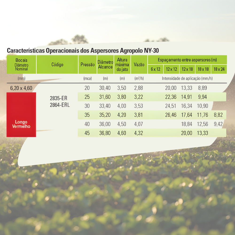 Aspersor Agropolo NY30 Vermelho 6,20mm | Kit 10 Peças | Eixo Nylon | 1 Polegada