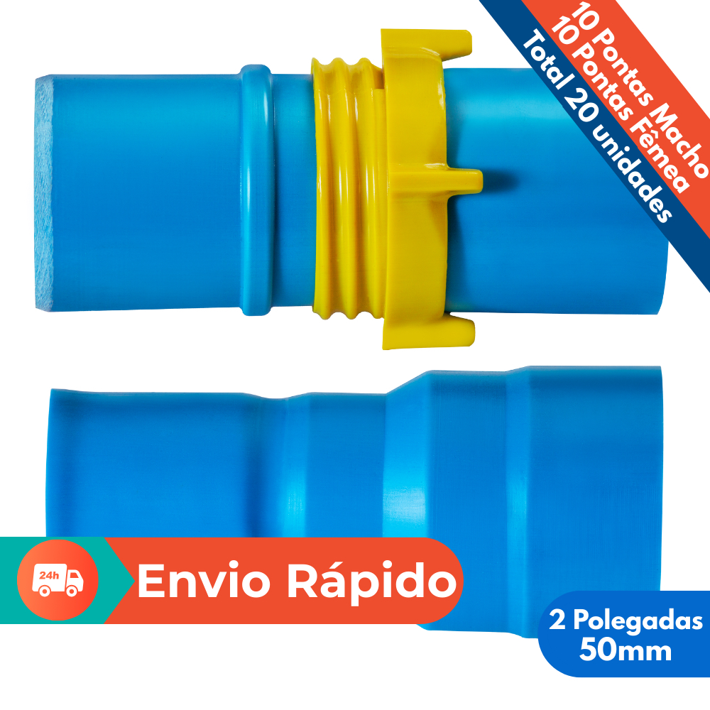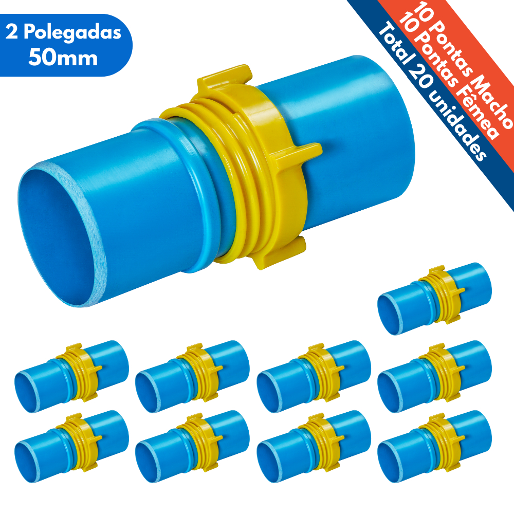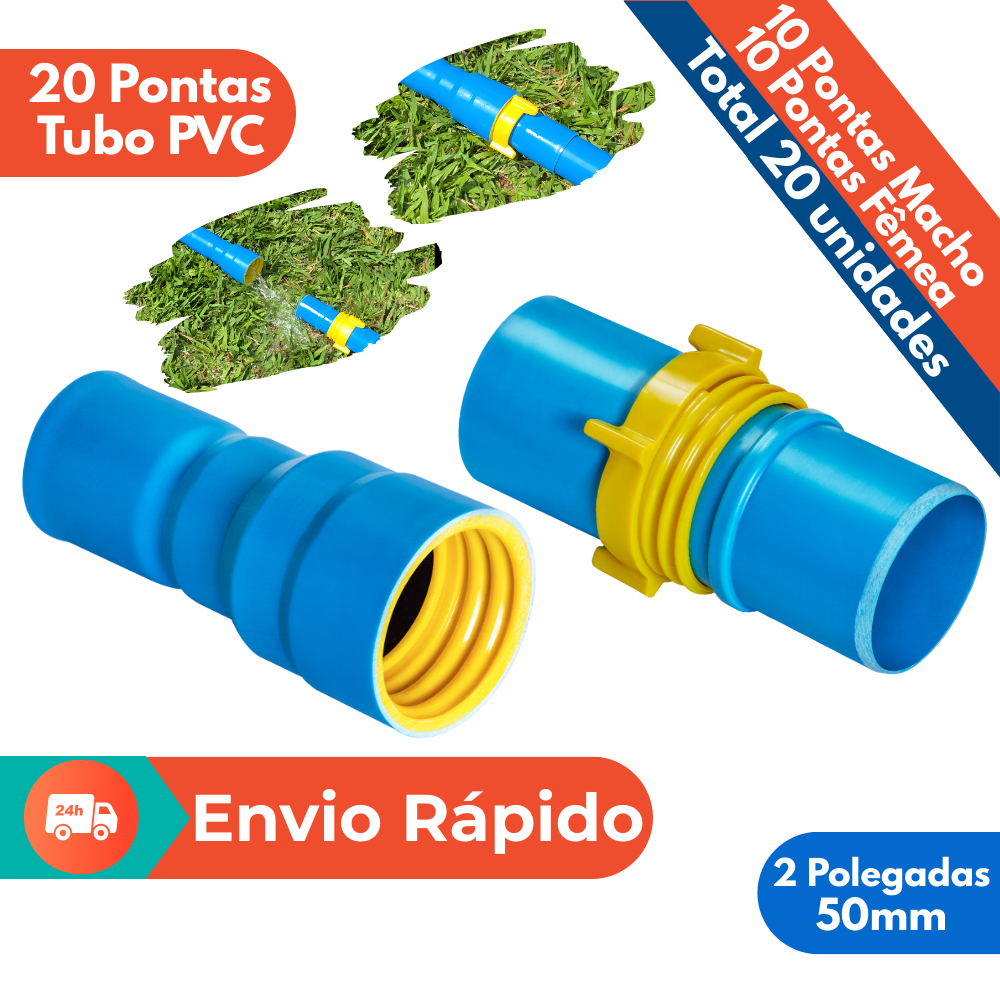 Conexão Irrigação Ponta Macho 2" e Ponta Fêmea 2" | Kit 20 Peças | Tubo PVC Engate Rosca