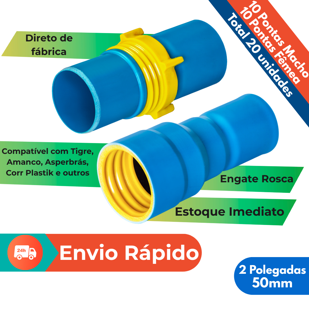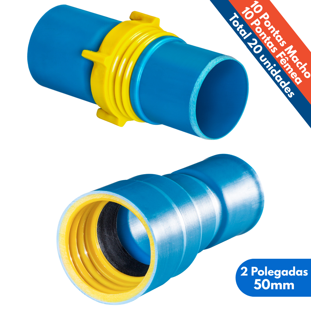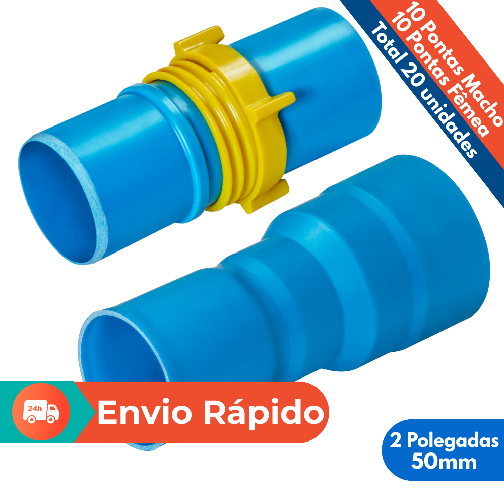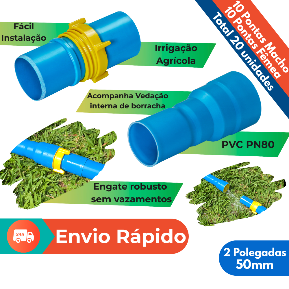 Conexão Irrigação Ponta Macho 2" e Ponta Fêmea 2" | Kit 20 Peças | Tubo PVC Engate Rosca