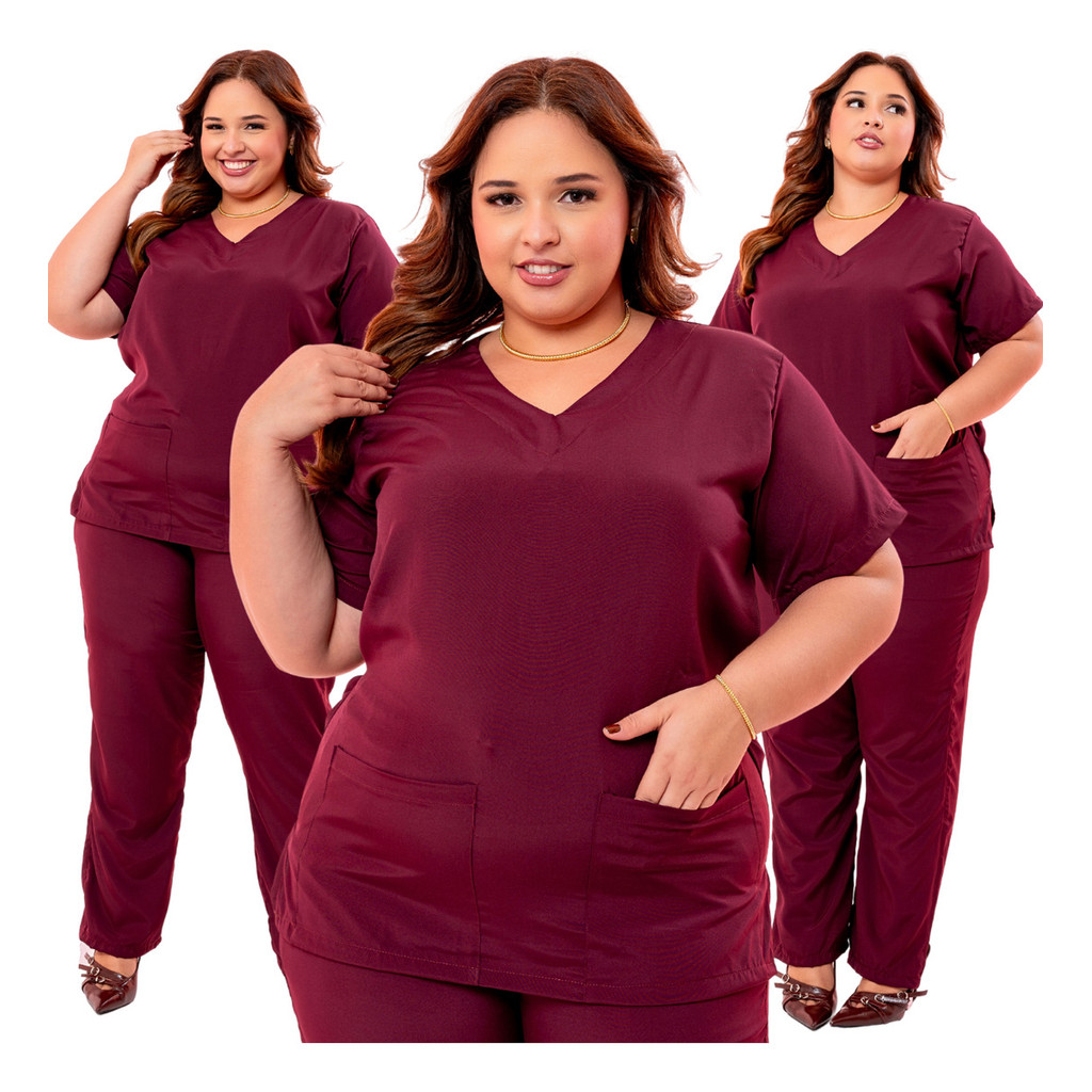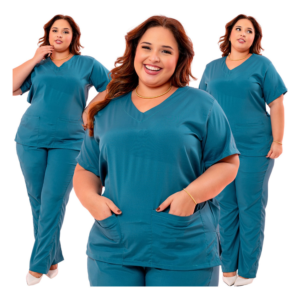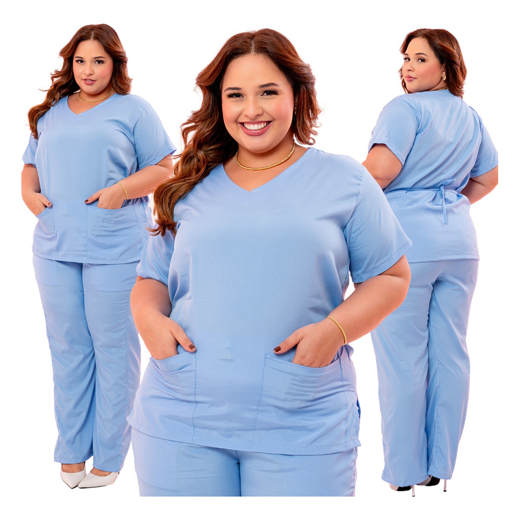 Pijama Cirúrgico Feminino Plus Size Scrub Com Elastano Luxo