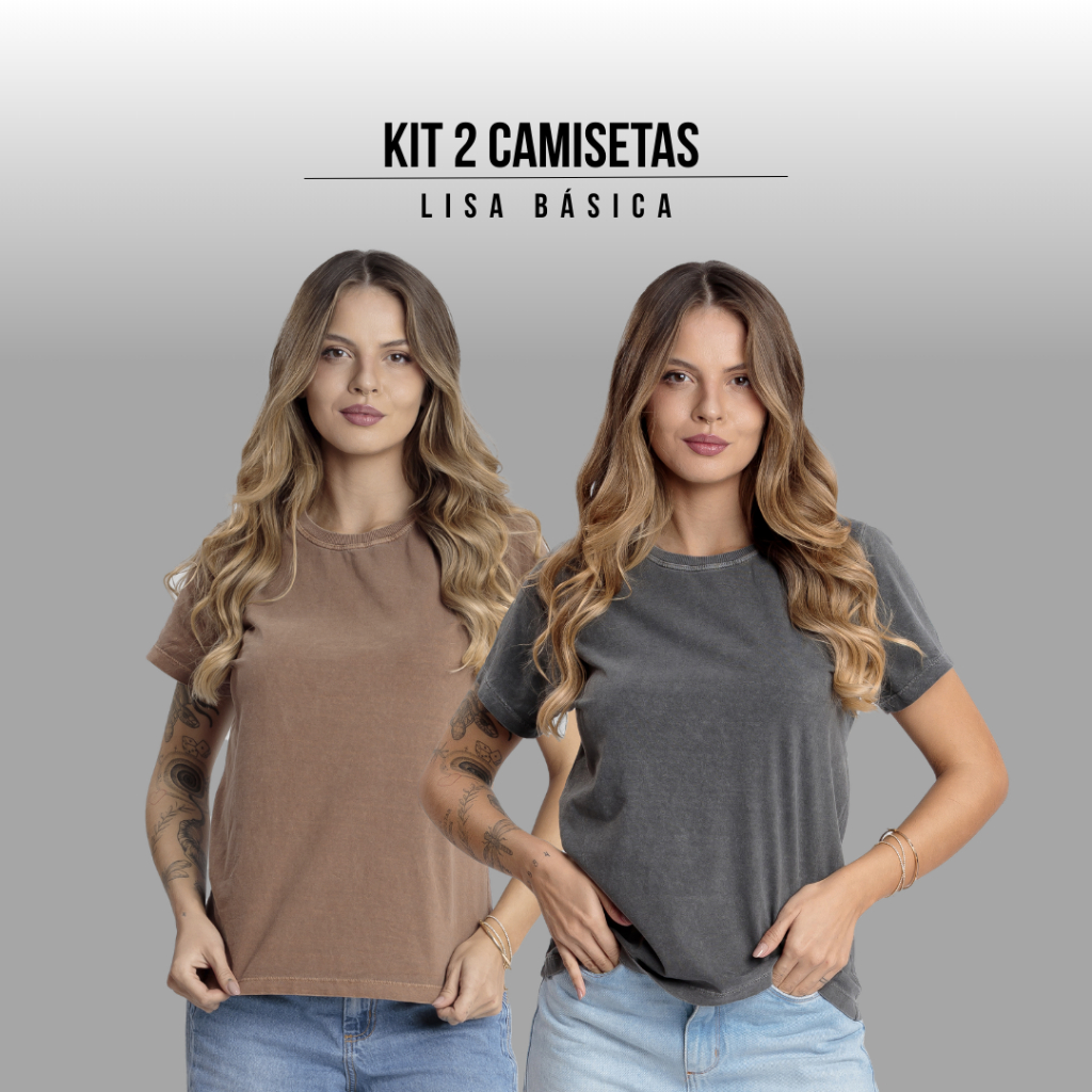 Kit 2 Babylook Feminina Estonada Blusa Manga Curta Casual Confortável Camiseta Dia a Dia