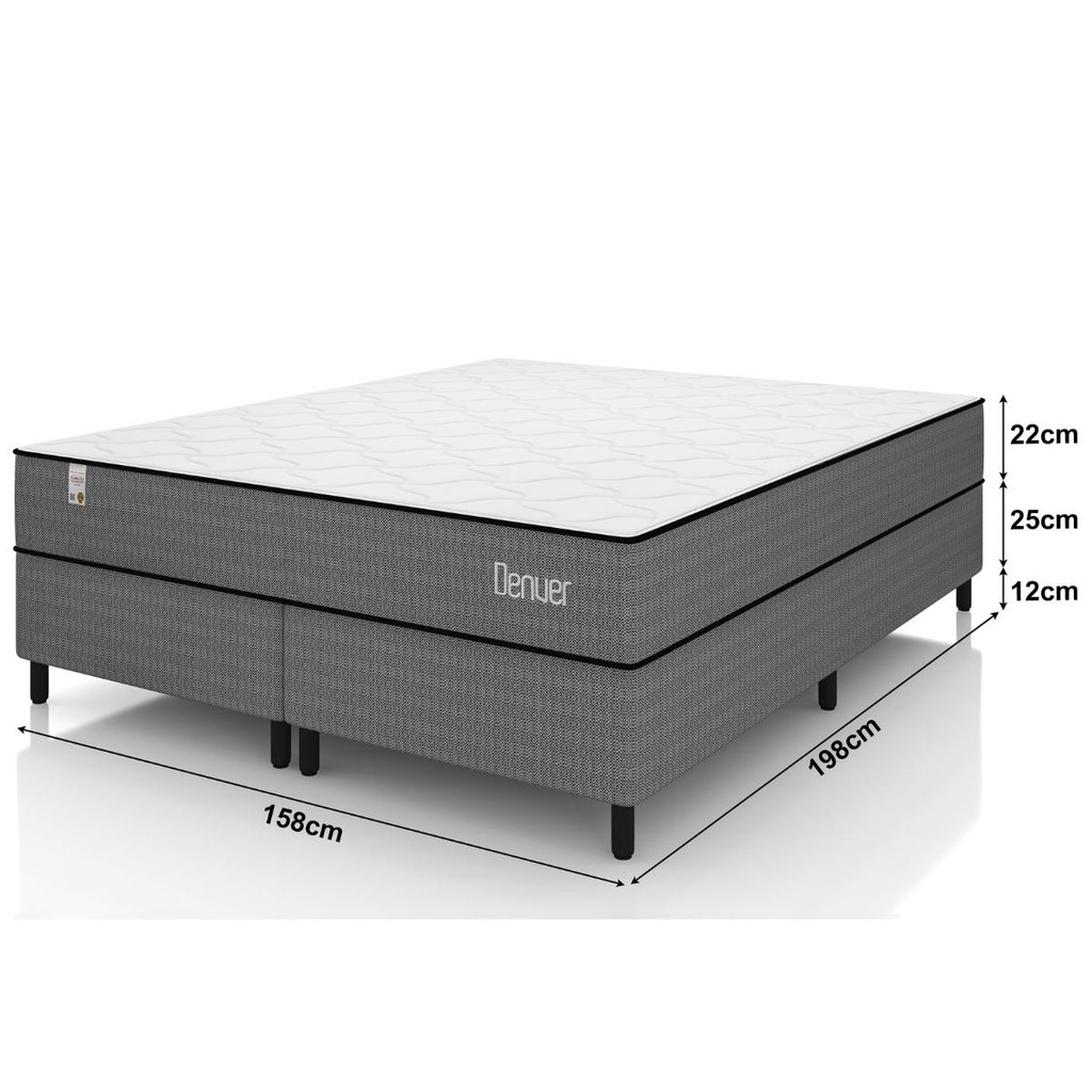 Cama Box + Colchão Queen Molas Ensacadas Plumatex Denver Suporta 110kg Antiacaro Kit Completo